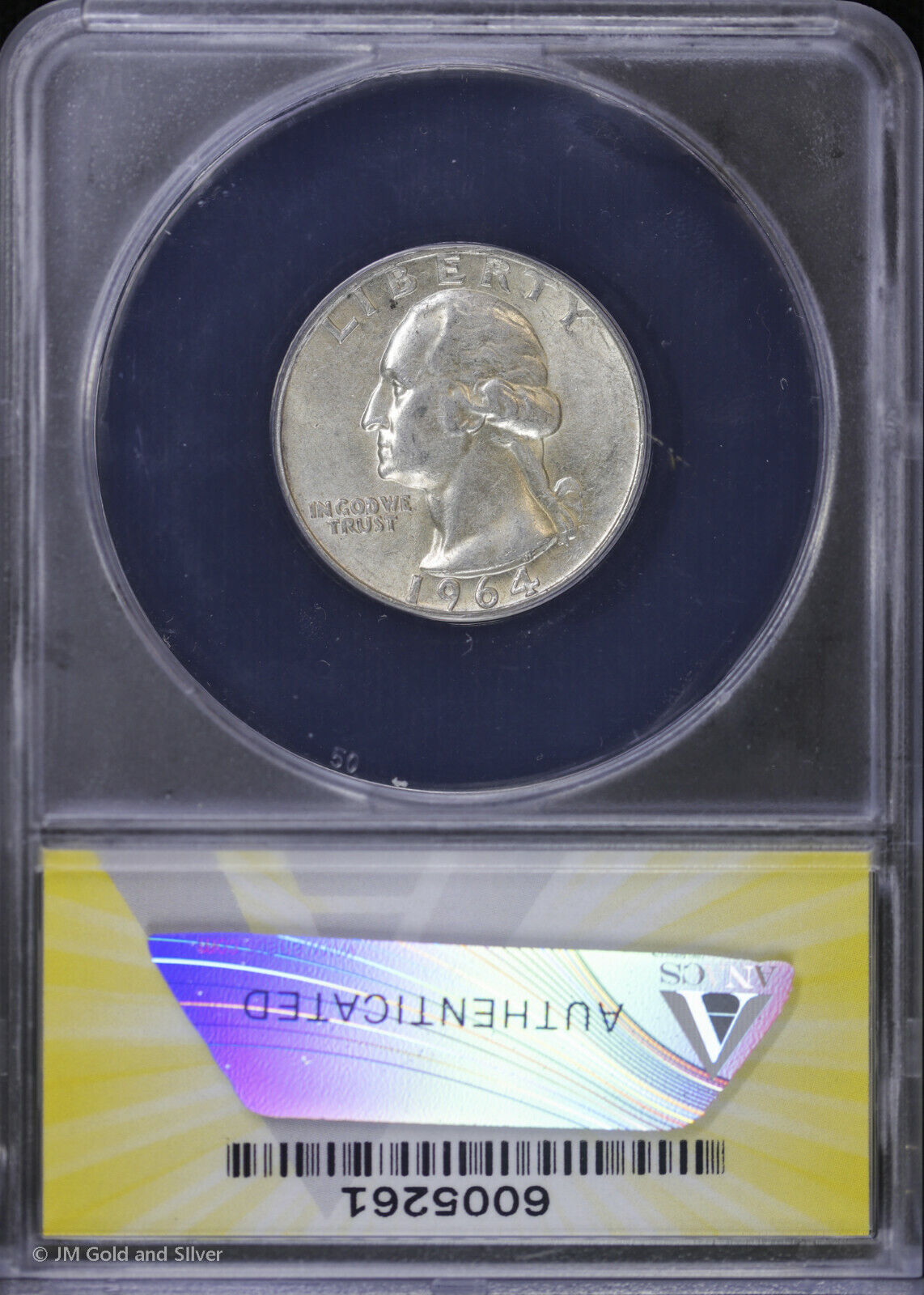 1964 D 25c Washington Quarter ANACS AU 58 | Major Lamination