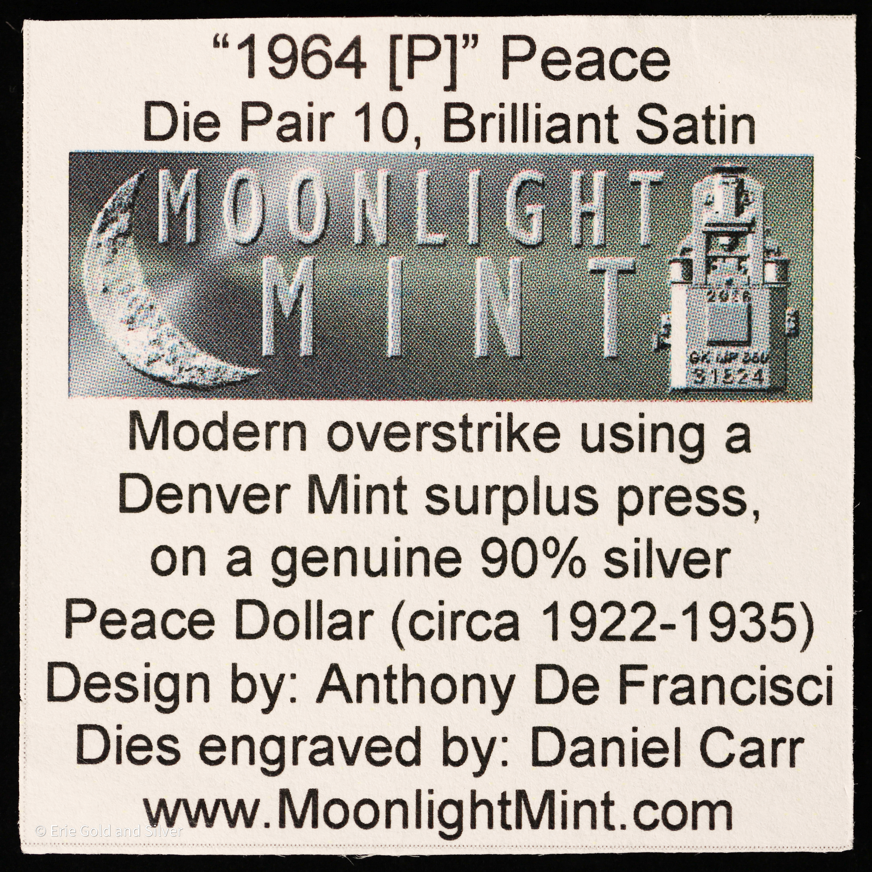 1964 Dan Carr "Peace $" O/S on USA 1922-35 $ Die Pair 10 Token ANACS MS 69