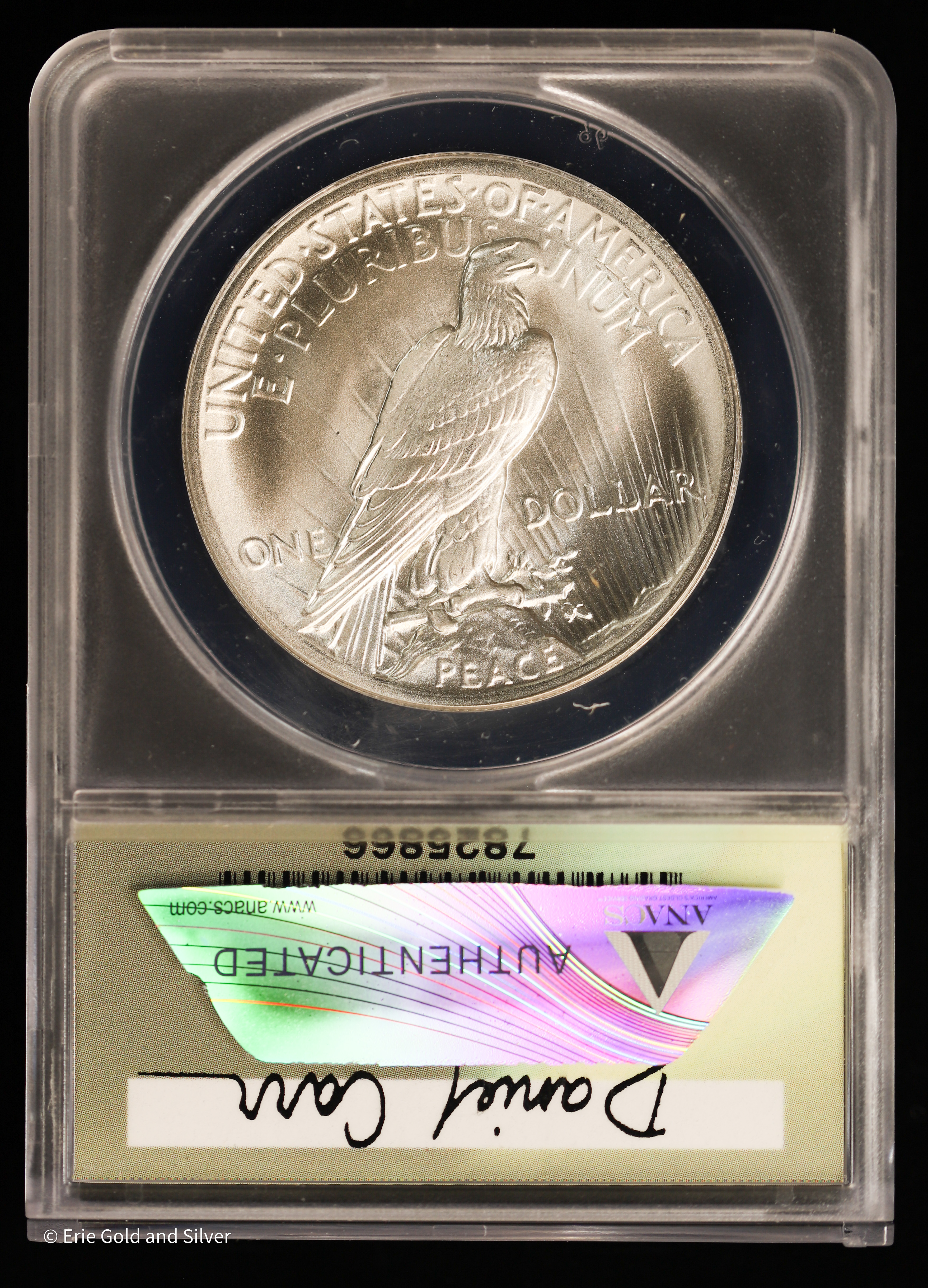 For sale is a 1964 Dan Carr "Peace $" O/S on USA 1922-35 $ Die Pair 10 Token. Graded / Certified by ANACS at MS 69.