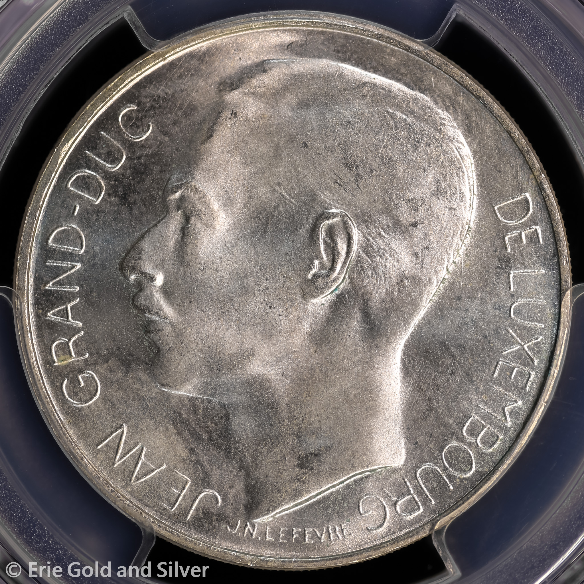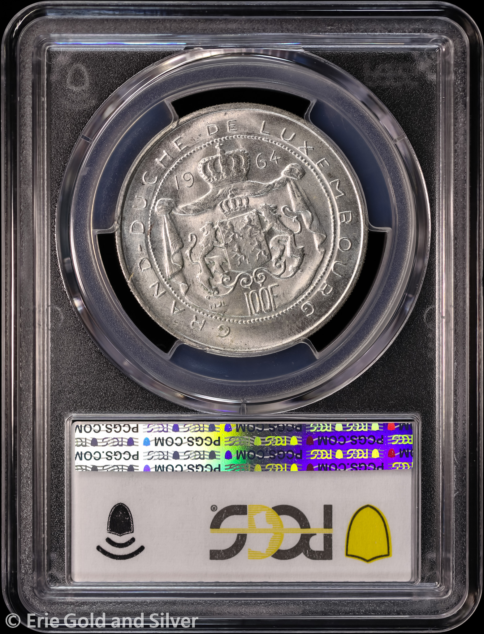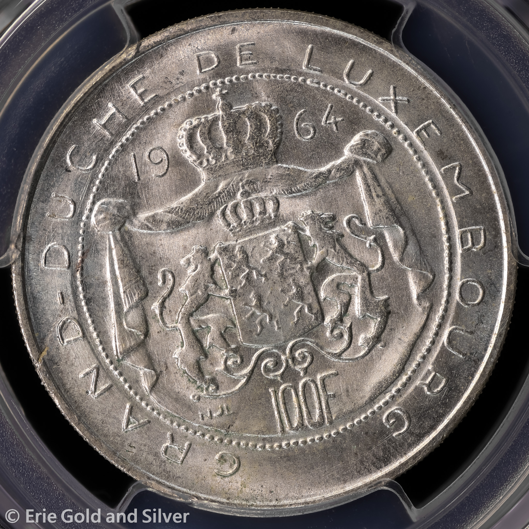 1964 Luxembourg Grand Duke Jean Silver 100 Francs Coin PCGS MS 66