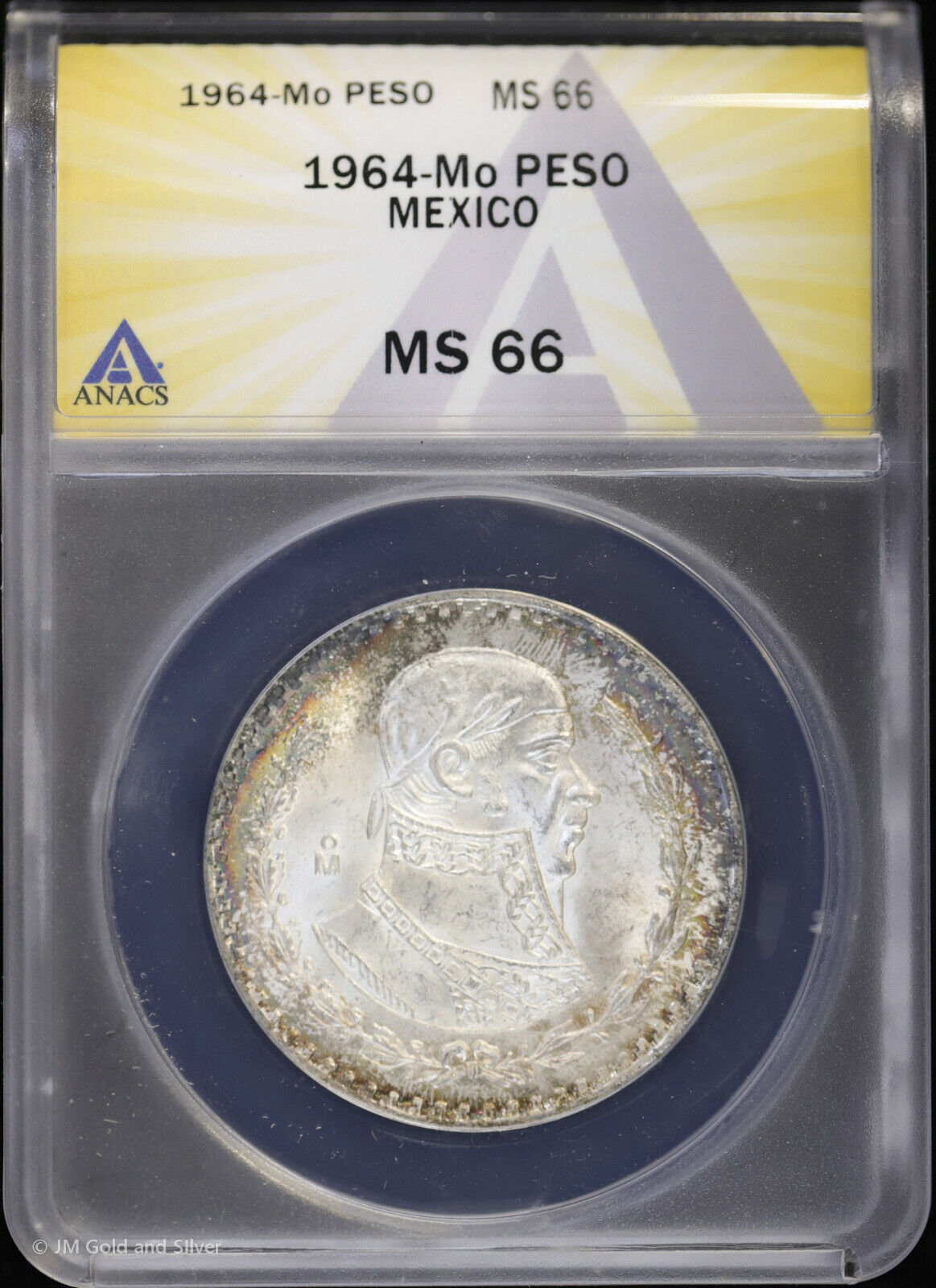 1964 Mo 1p Mexico Silver Peso ANACS MS 66 | Toned Uncirculated UNC BU