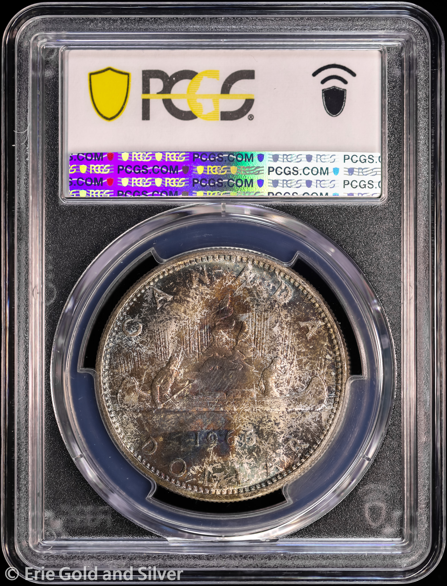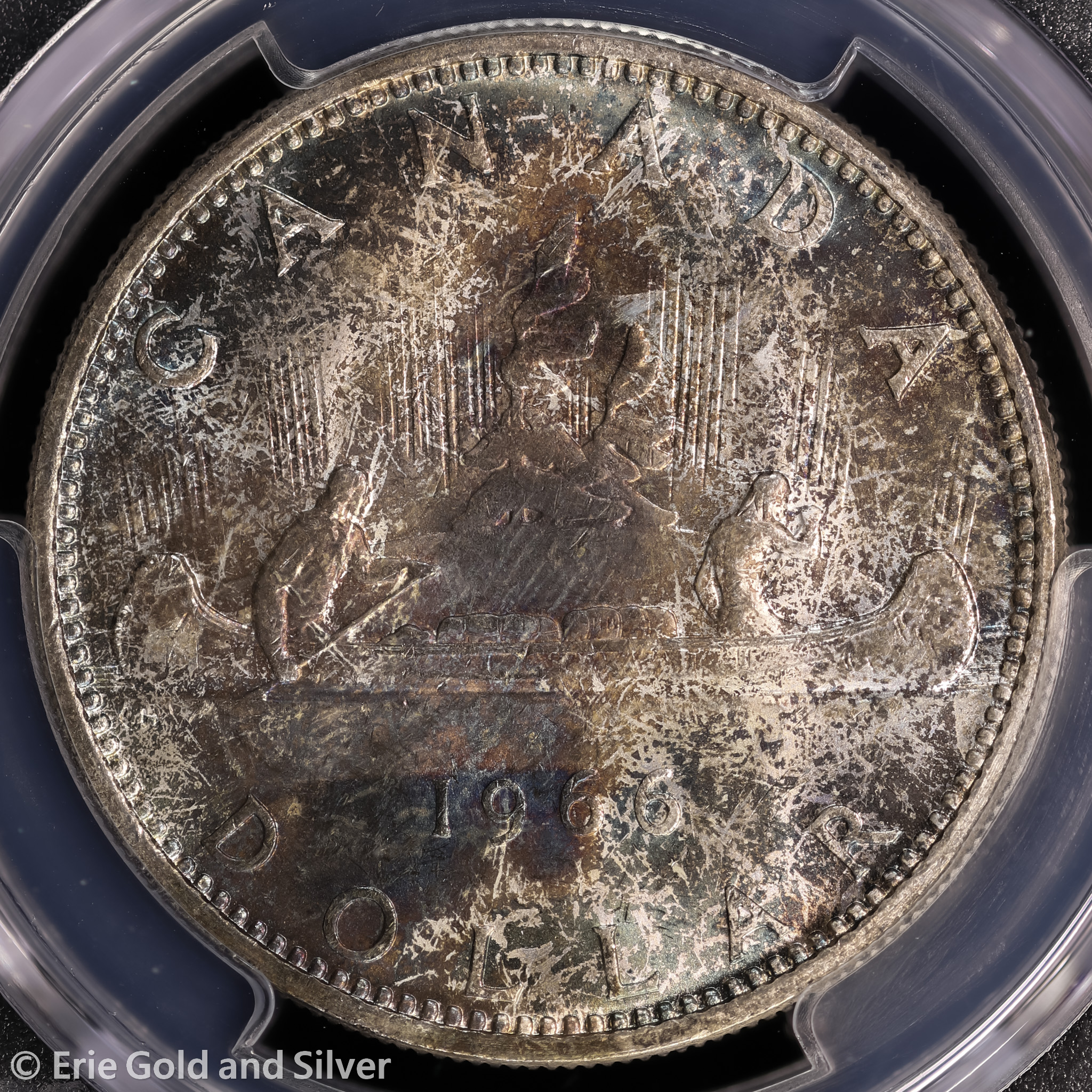 1966 Canada Elizabeth II Silver Dollar PCGS MS 64 | Large Beads, Toned