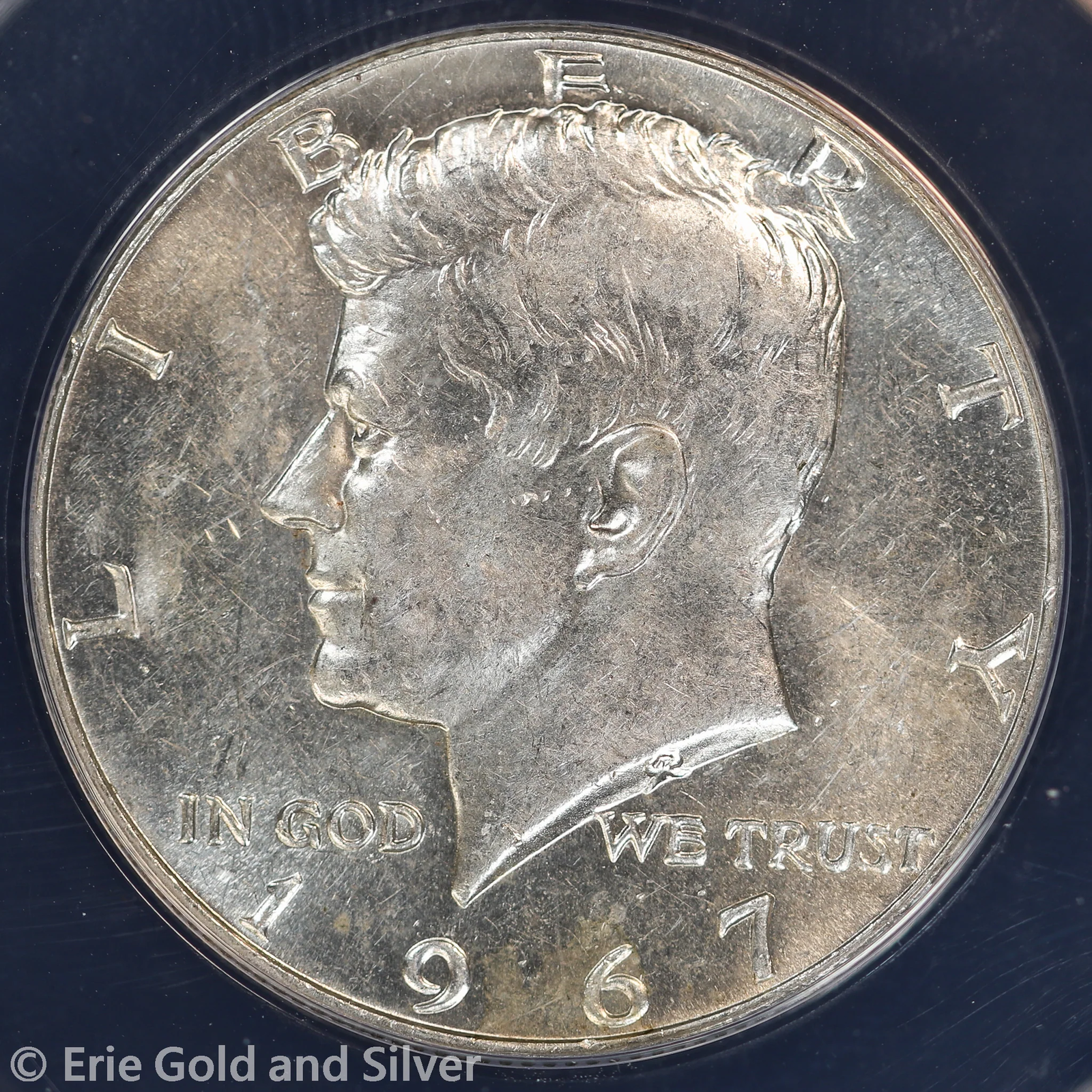1967 50C Kennedy Half Dollar ANACS AU 58 | Struck Through Debris