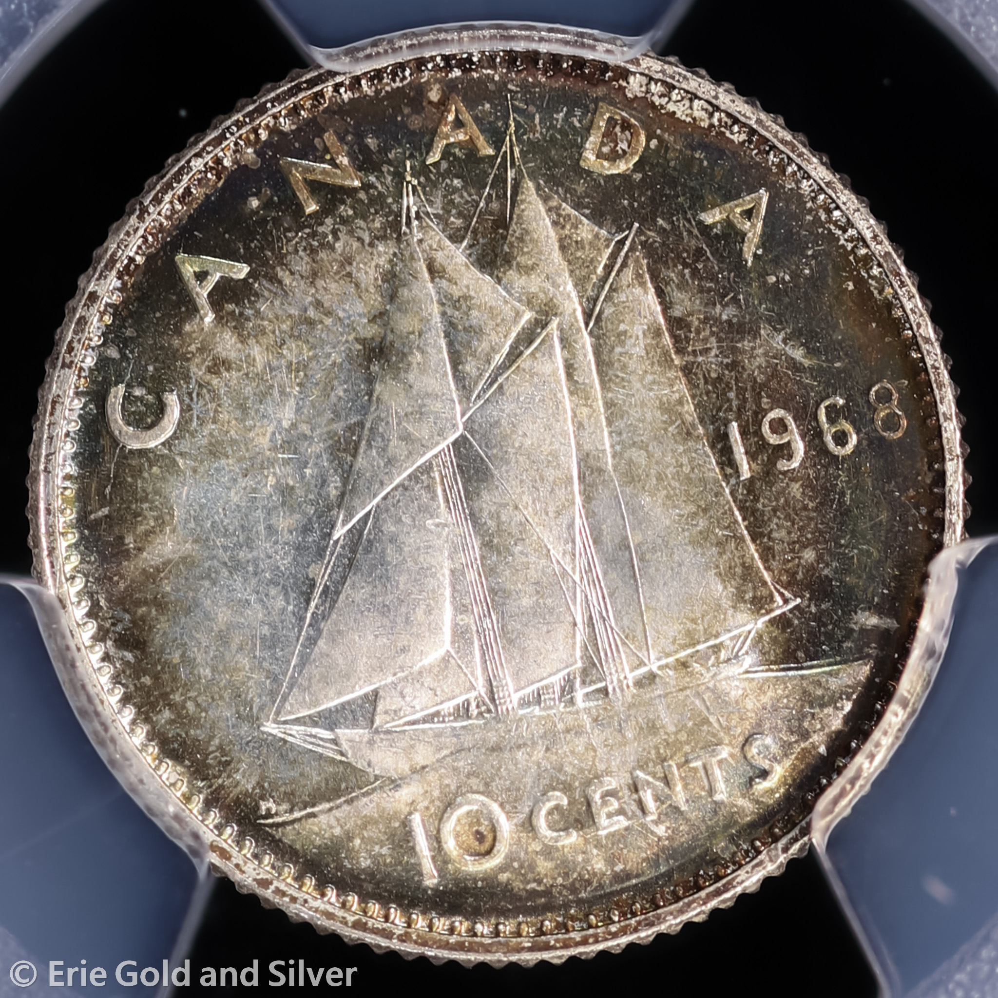 1968 Canada Elizabeth II Silver 10 Cent Coin PCGS MS 65 | Rainbow Toned