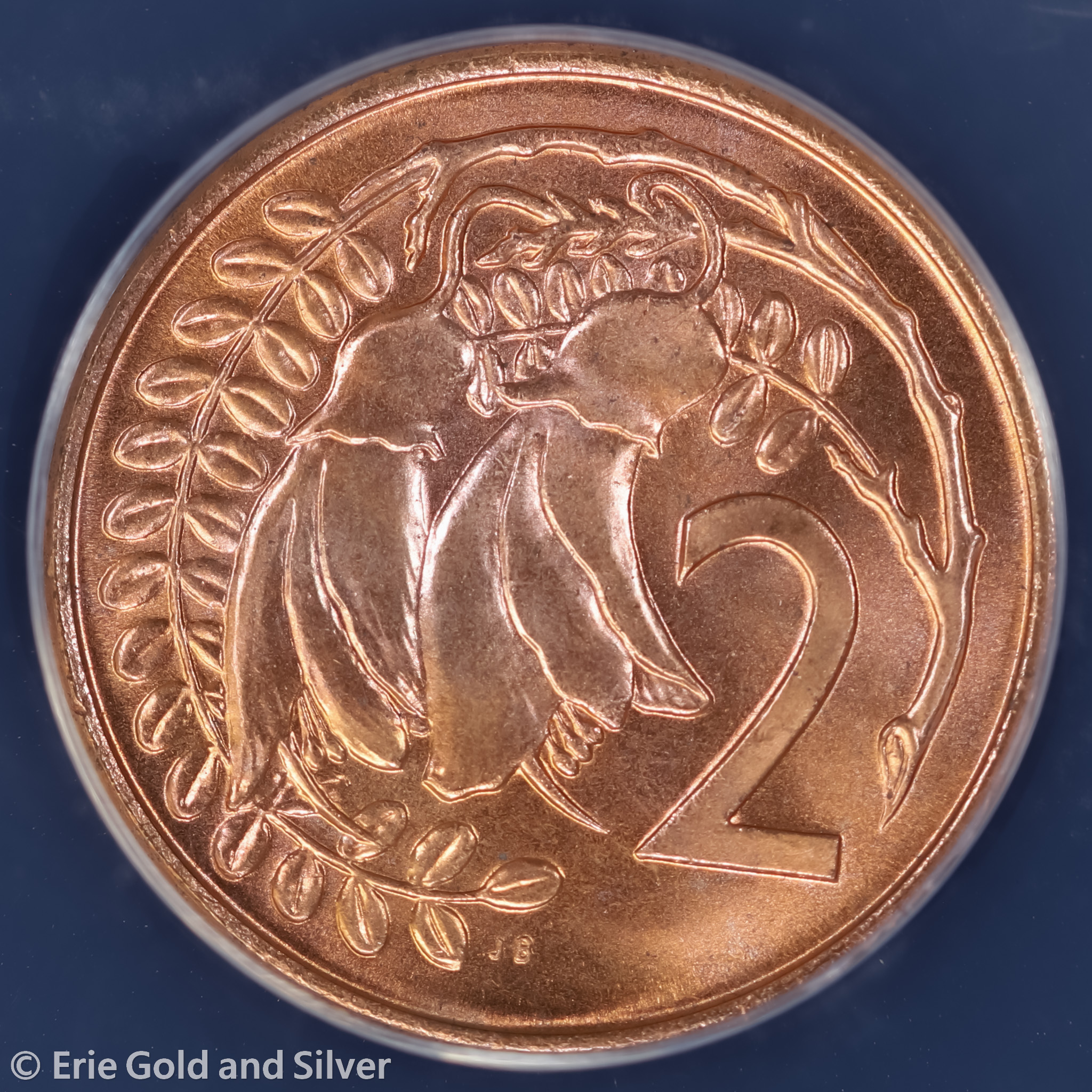 1969 New Zealand Elizabeth II 2 Cents ANACS MS 67 Red