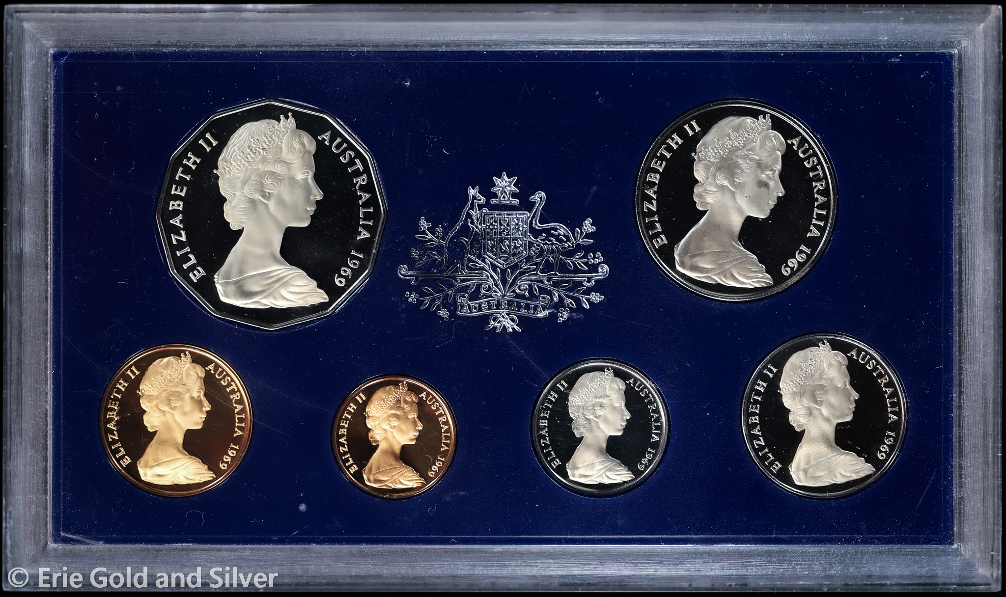 For sale is a 1969 Australia Royal Australian Mint 6 Coin Proof Set in OGP.