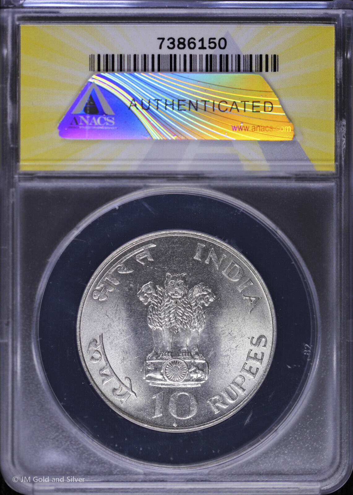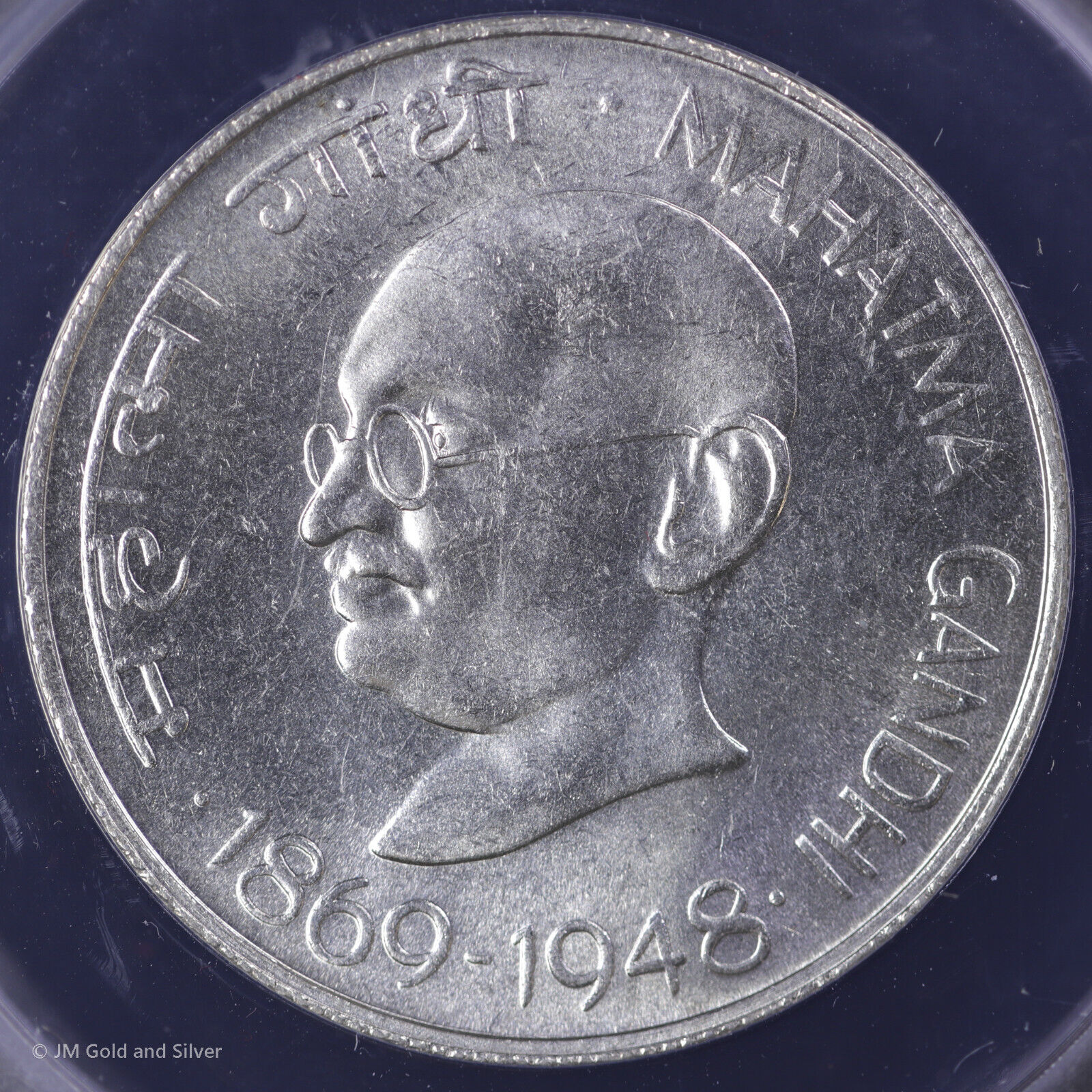 1969 B India Silver 10 Rupees ANACS MS 63 | Mahatma Gandhi's Birth Centennial