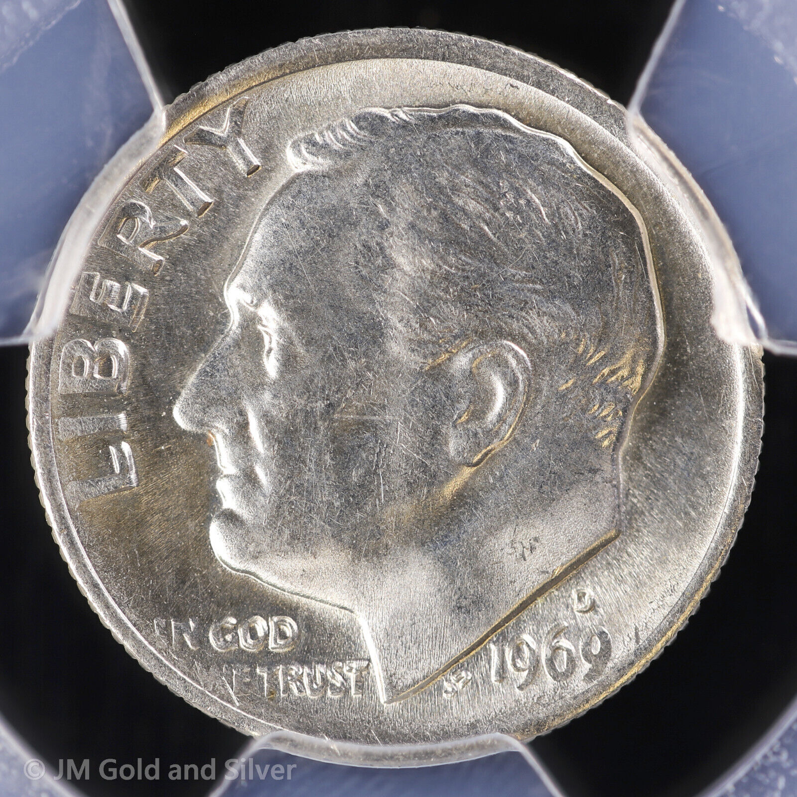 1969 D Roosevelt Dime PCGS MS 64 | Mint Error Reverse Missing Clad Layer UNC BU