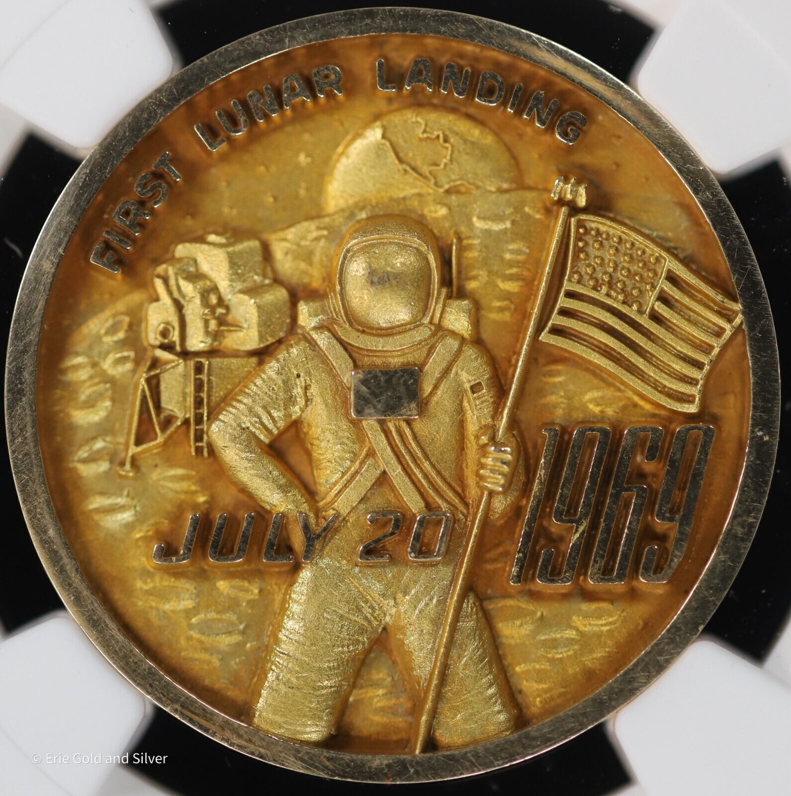 1969 Gold Apollo 11 Medal First Lunar Landing LG Balfour 10k Gold NGC MS 65