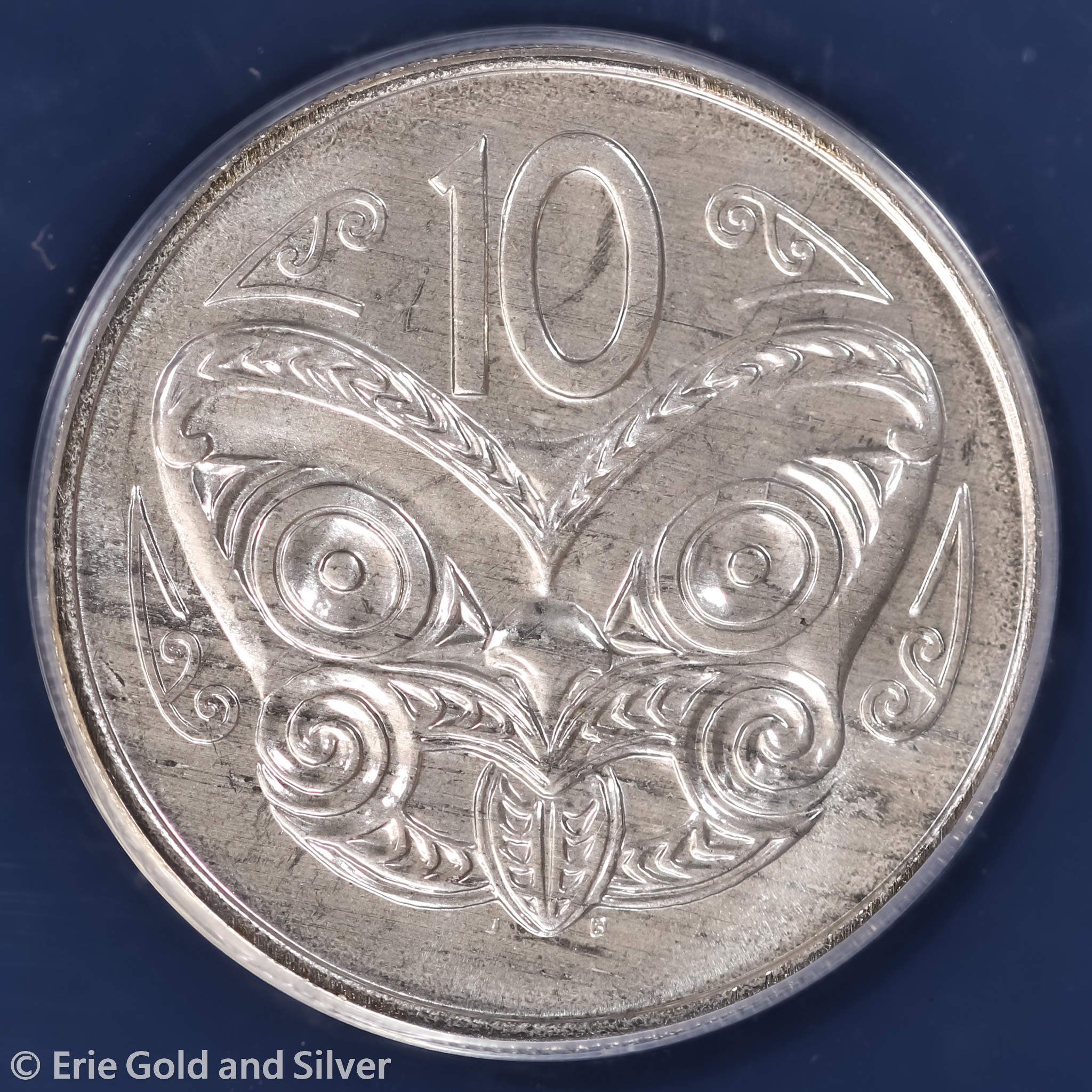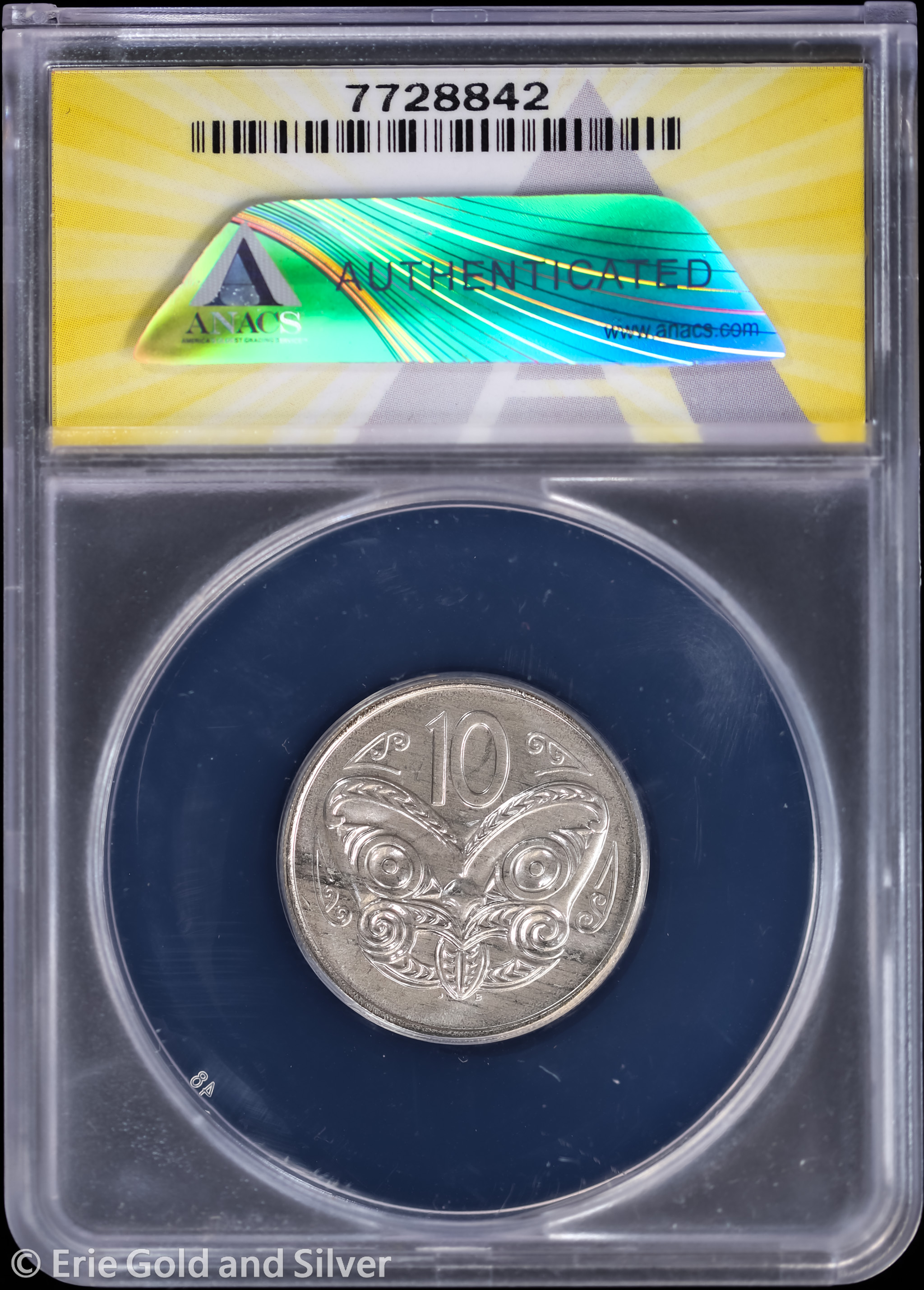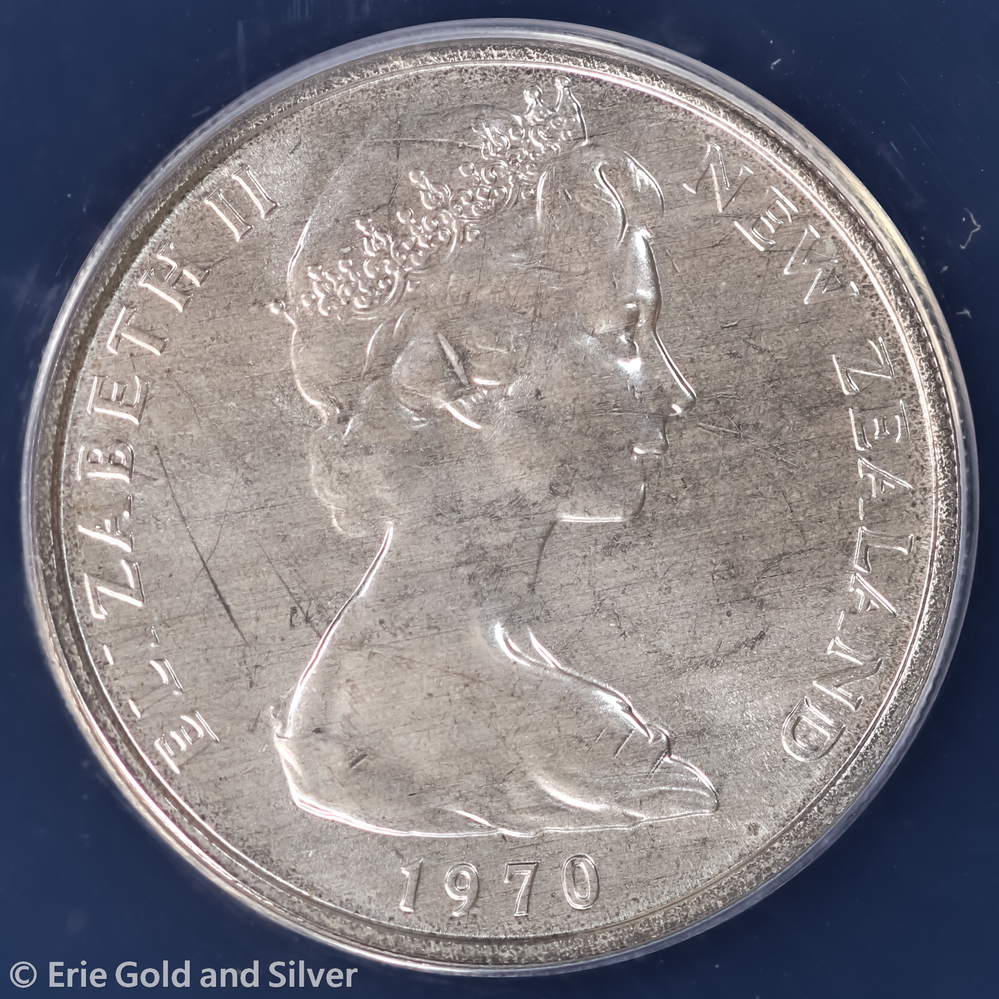 For sale is a 1970 New Zealand Proof-like Elizabeth II 10 Cents. Certified / graded by ANACS at MS 67.