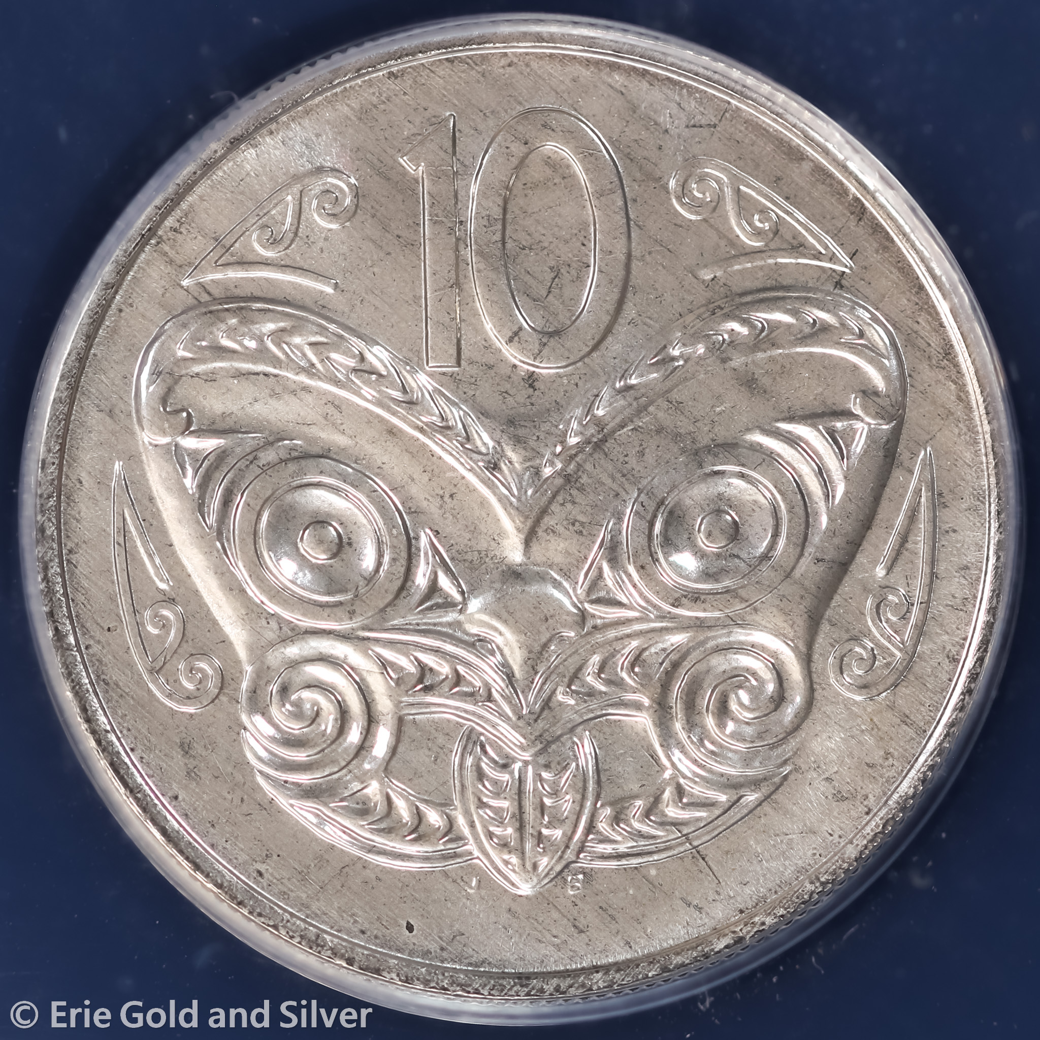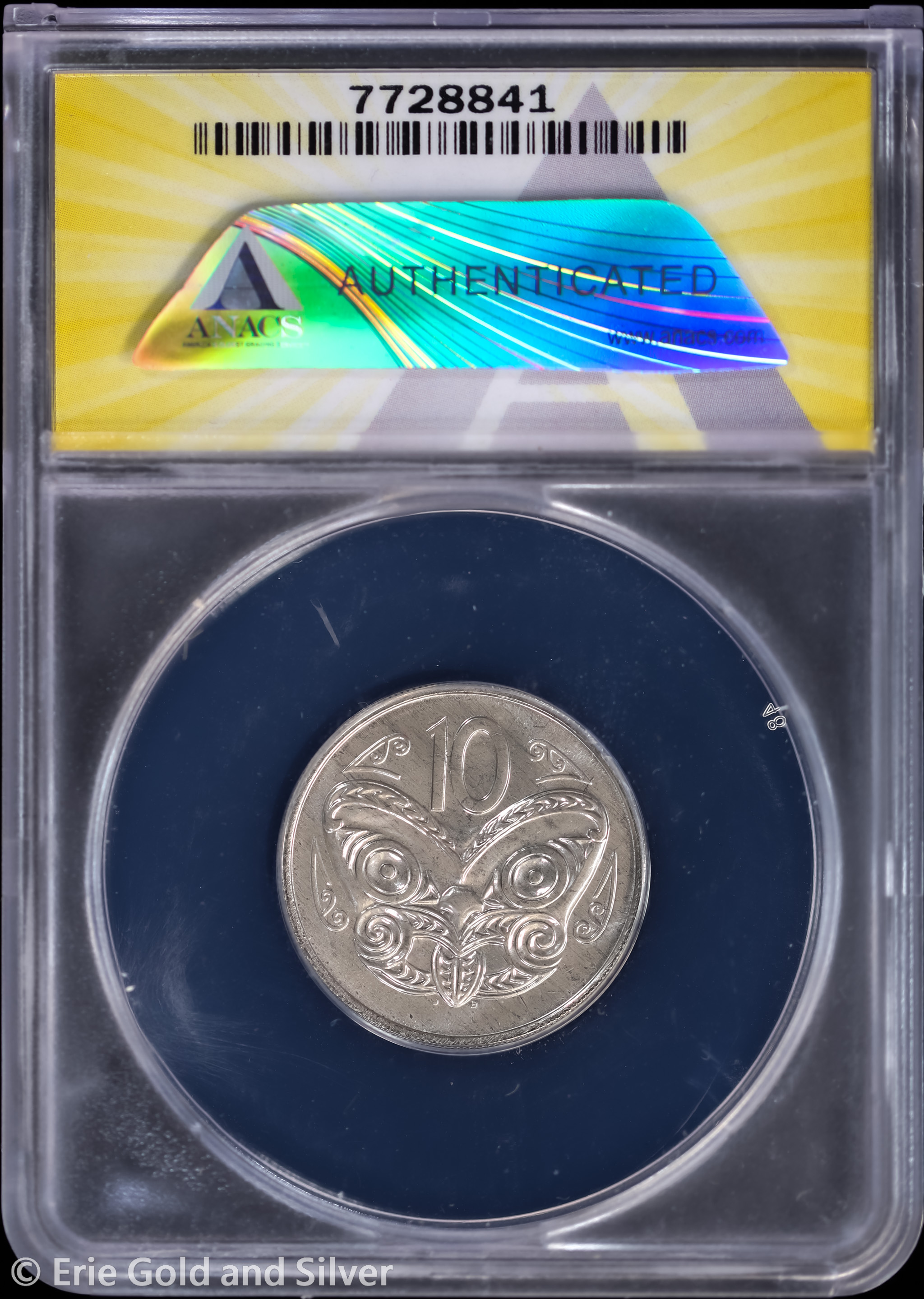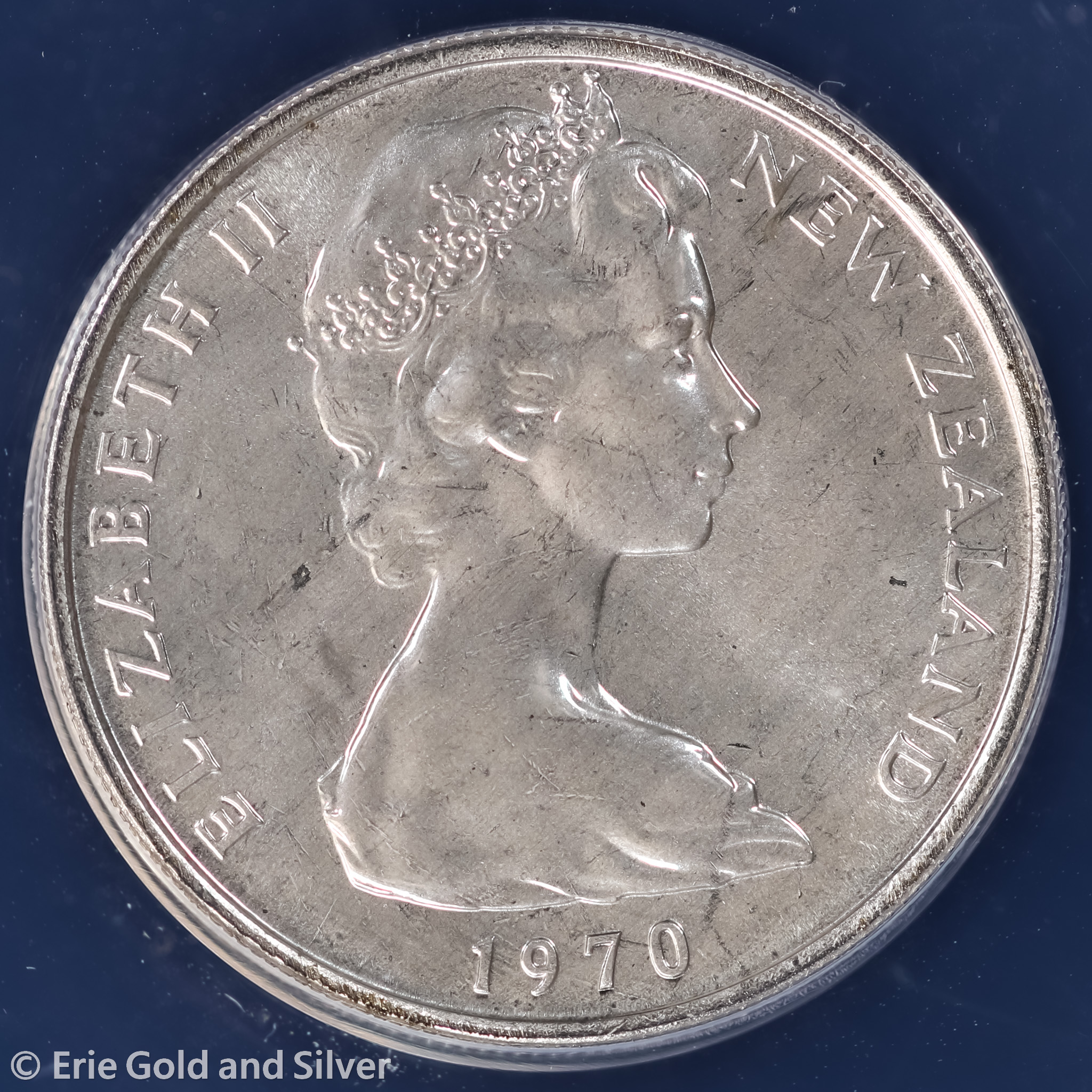 For sale is a 1970 New Zealand Proof-like Elizabeth II 10 Cents. Certified / graded by ANACS at MS 68.