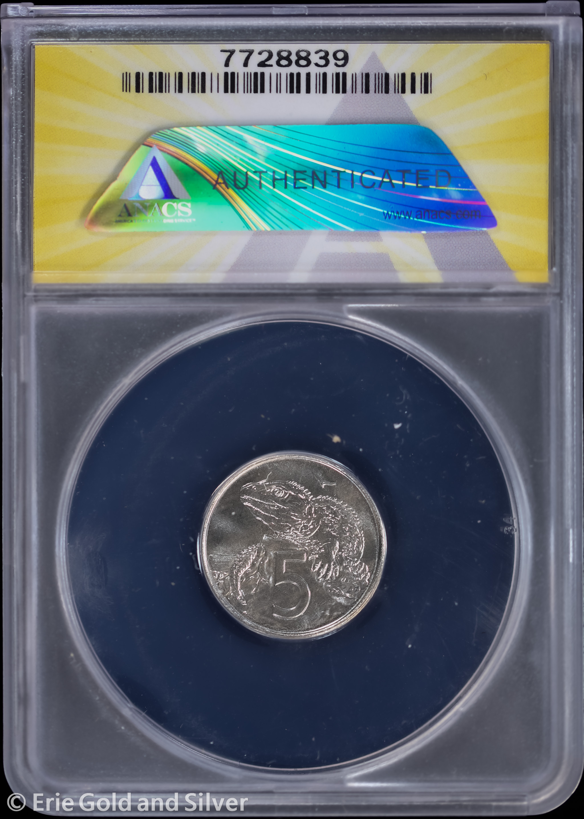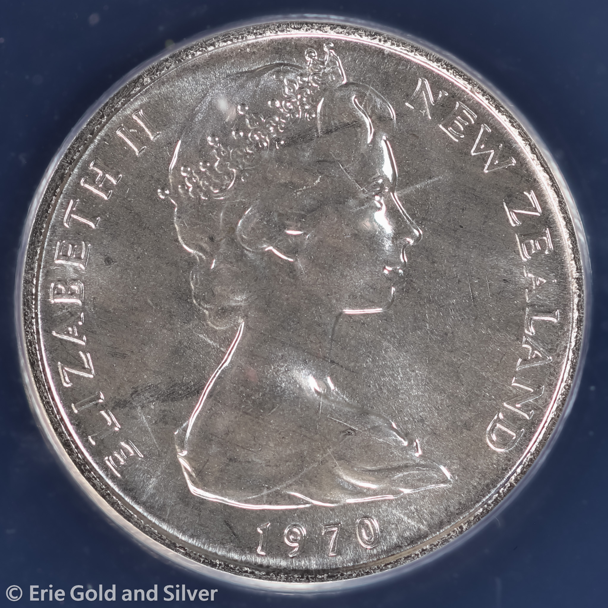 For sale is a 1970 New Zealand Proof-like Elizabeth II 5 Cents. Certified / graded by ANACS at MS 68.