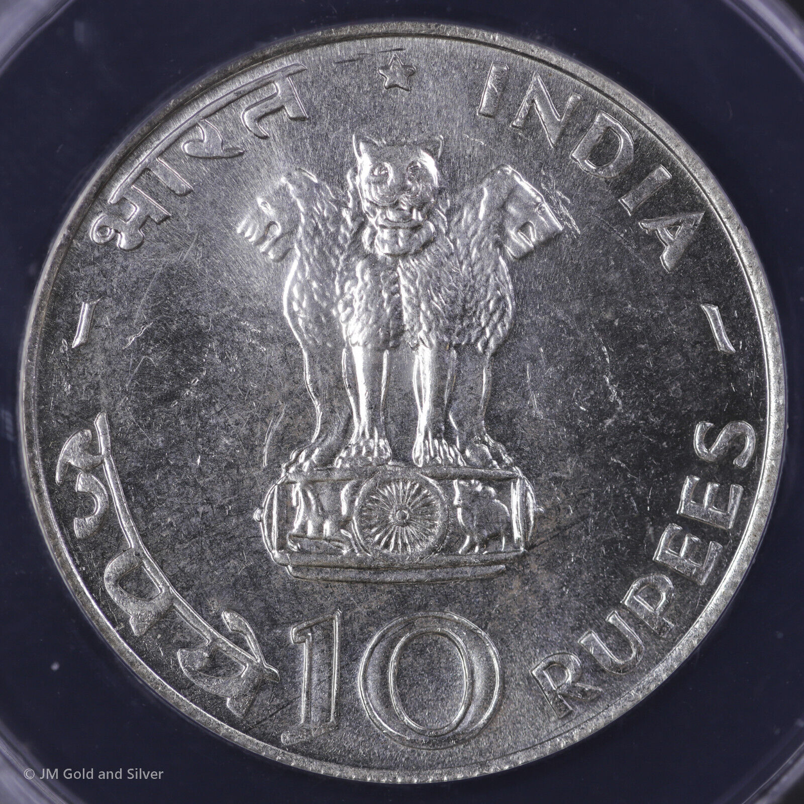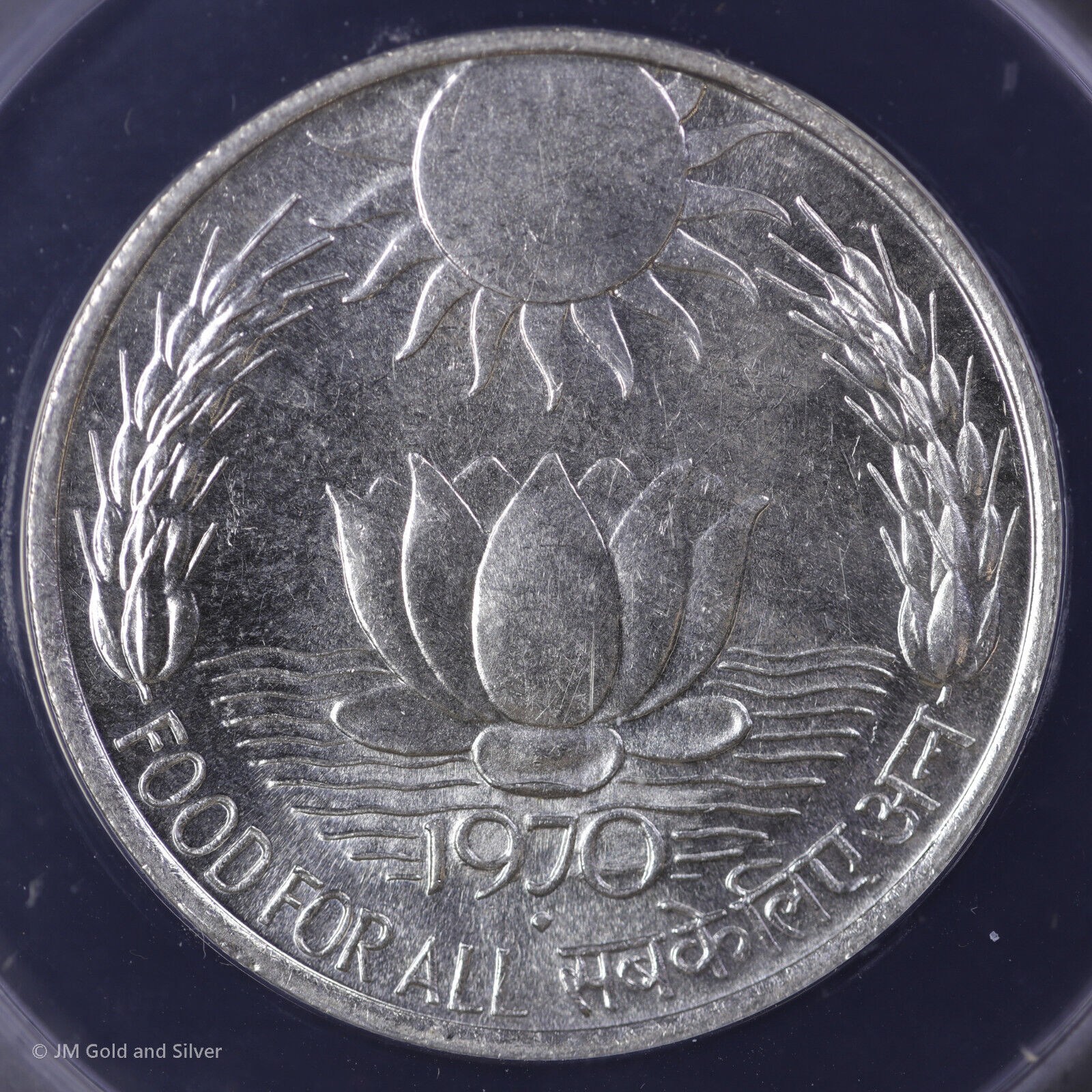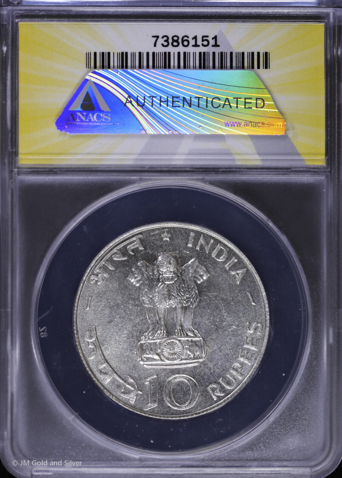 1970 India Silver 10 Rupees ANACS MS 63 | FAO Issue Asoka Lion / Lotus Flower