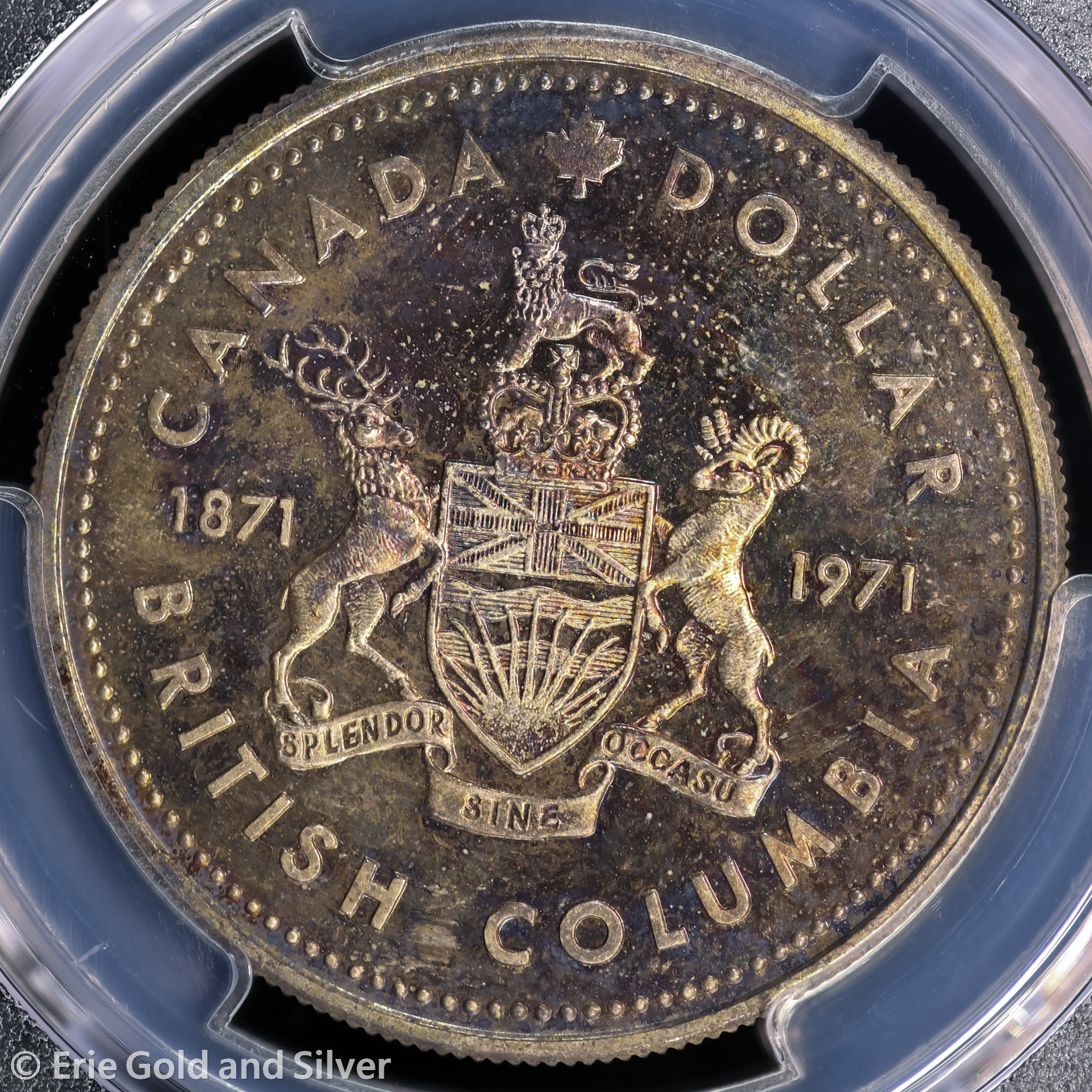 1971 Canada British Columbia Centennial Silver Dollar PCGS SP 66 | Toned