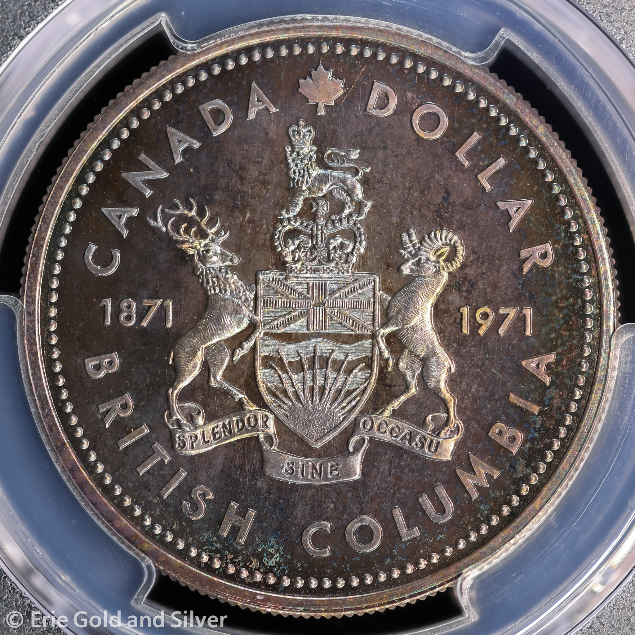 1971 Canada British Columbia Centennial Silver Dollar PCGS SP 68 | Toned