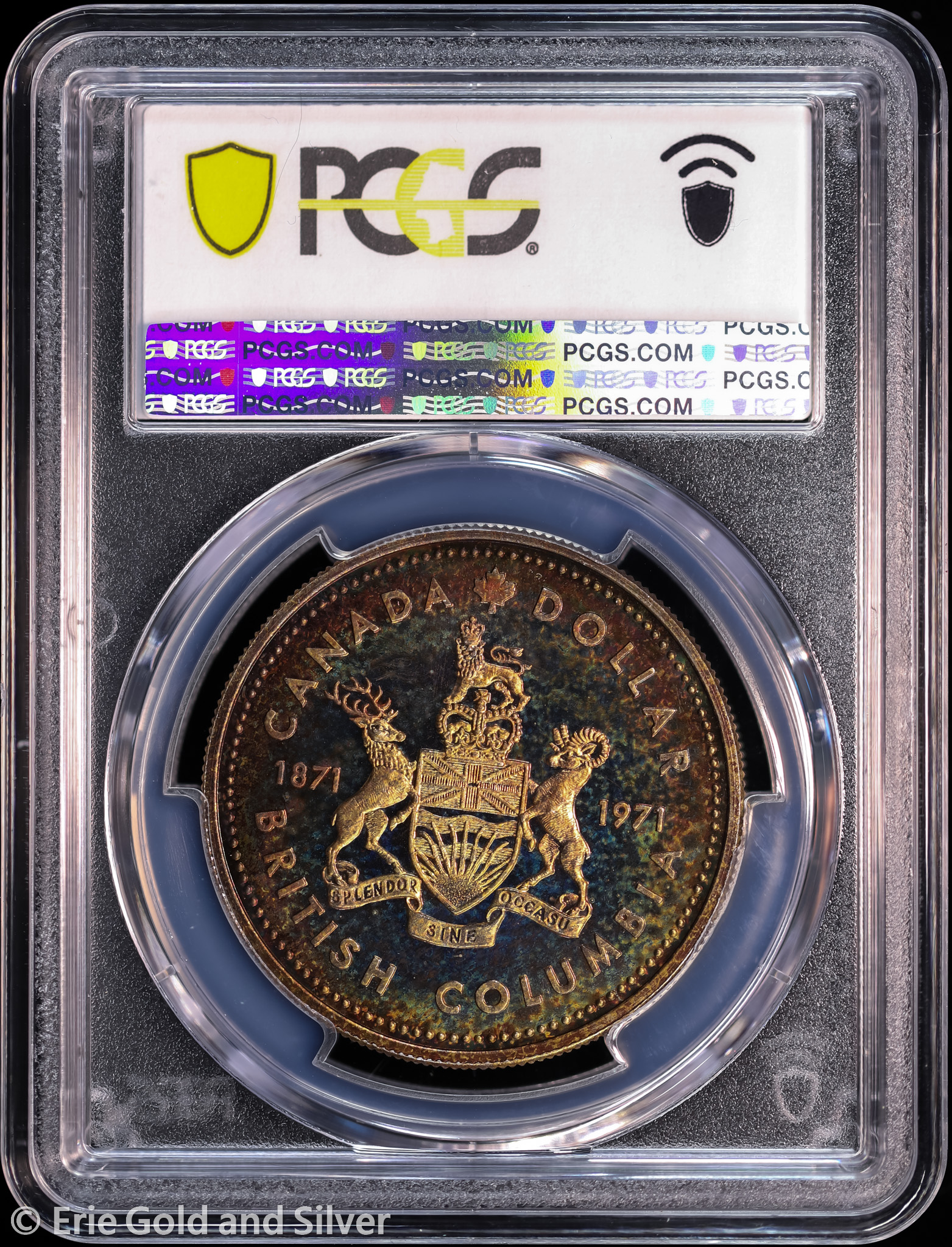 1971 Canada British Columbia Centennial Silver Dollar PCGS SP 68 | Toned