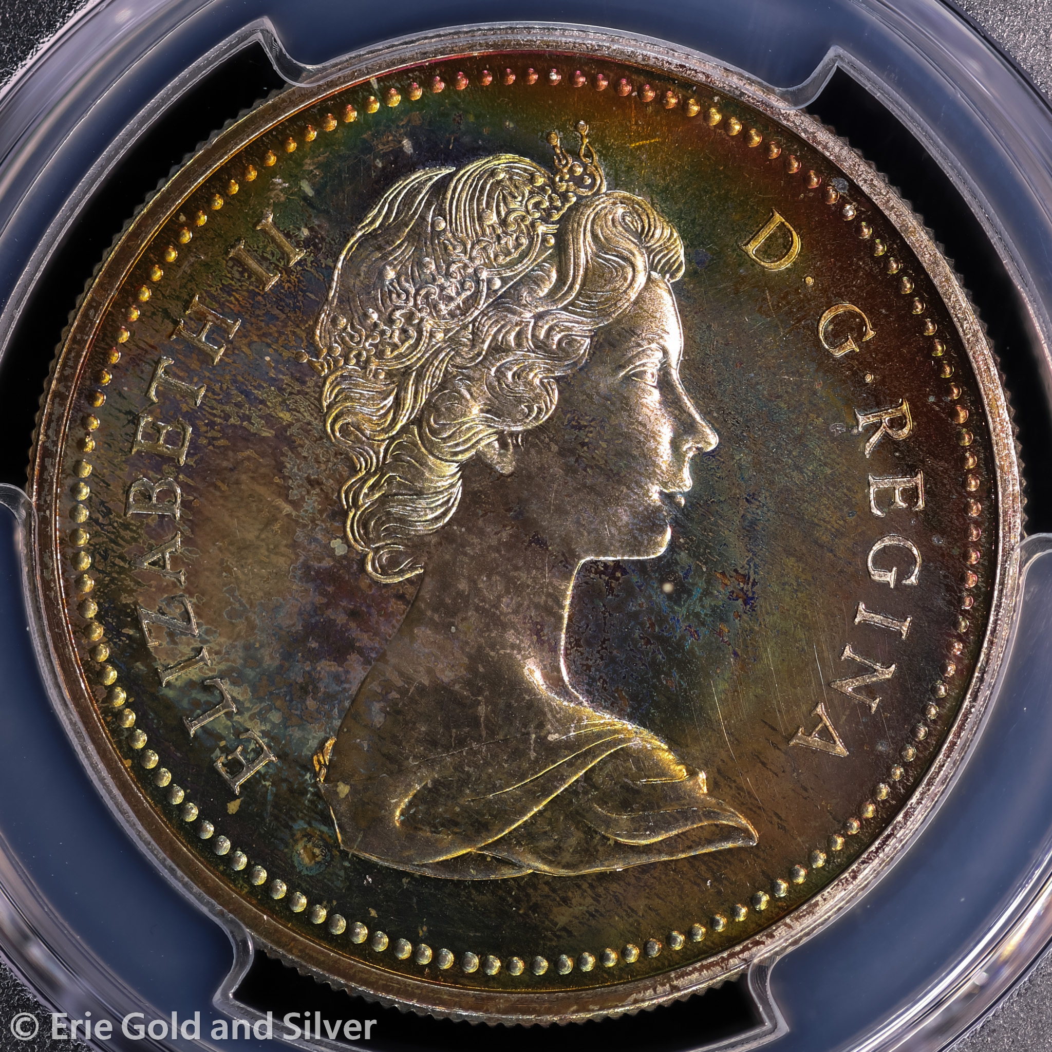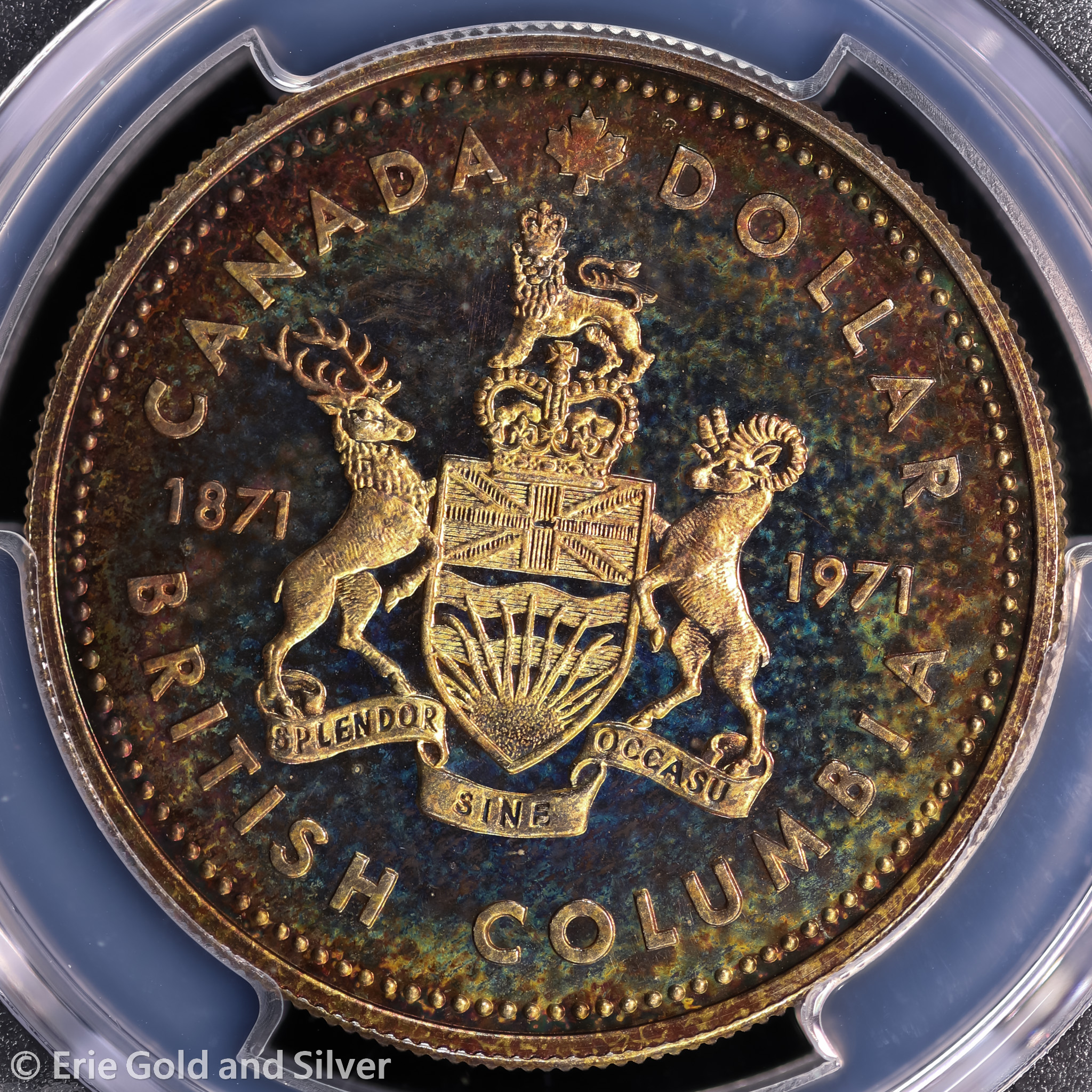 1971 $1 Canada British Columbia Centennial Silver Dollar PCGS SP 68 | Toned