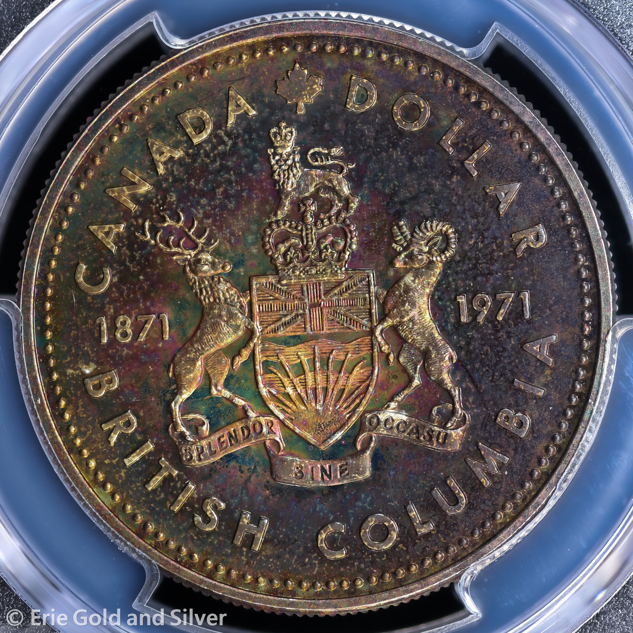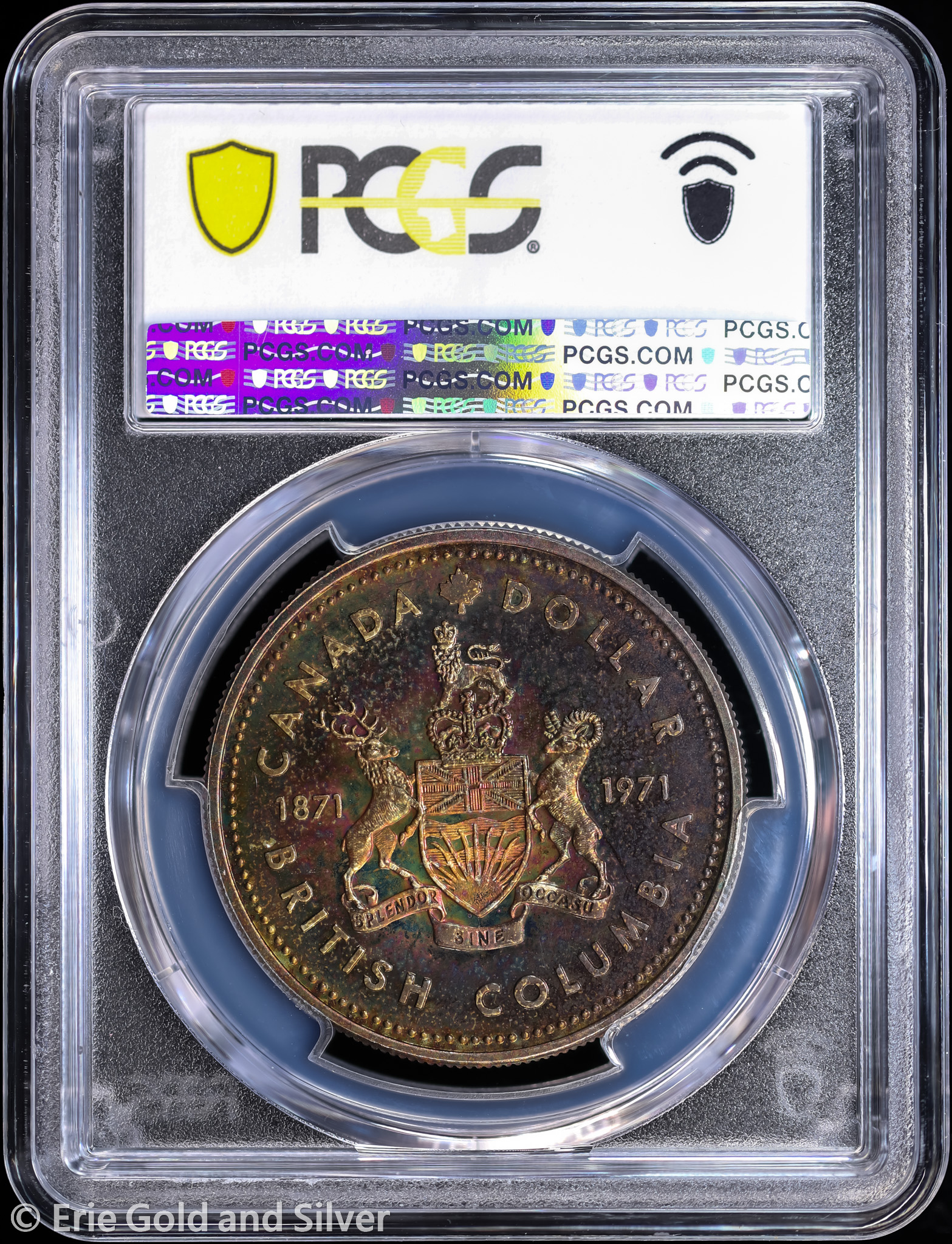 1971 Canada British Columbia Centennial Silver Dollar PCGS SP 68 | Toned