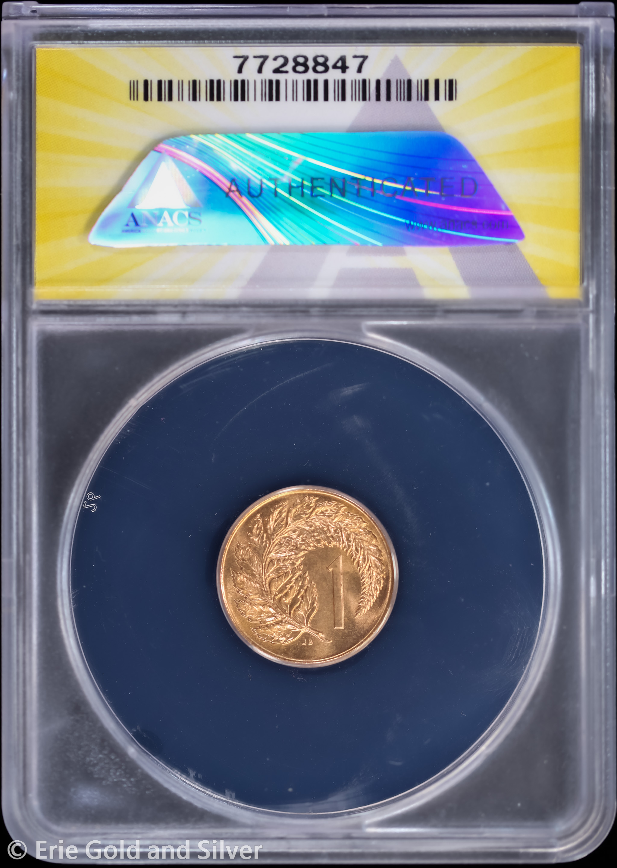 For sale is a 1971 New Zealand Elizabeth II Cent. Certified / graded by ANACS at MS 67 Red.