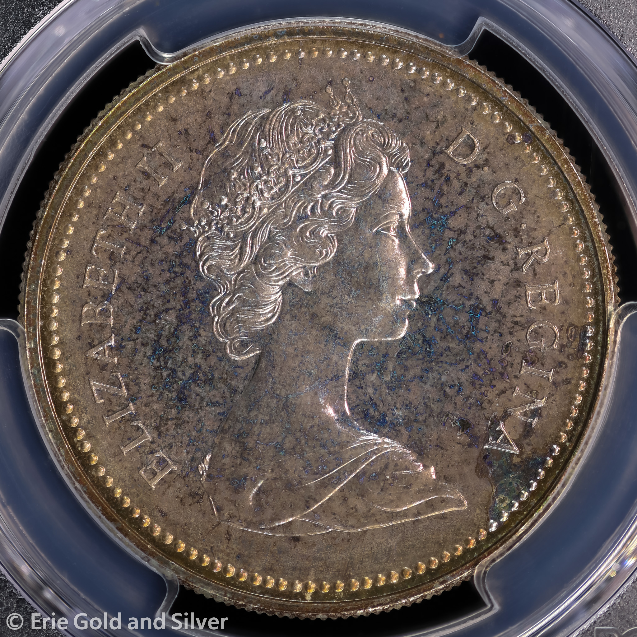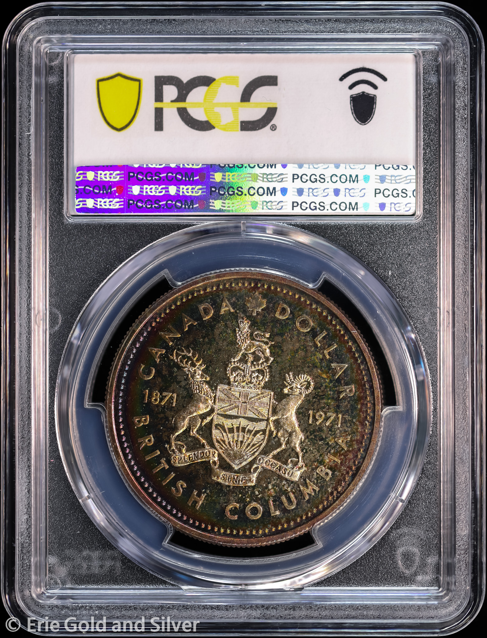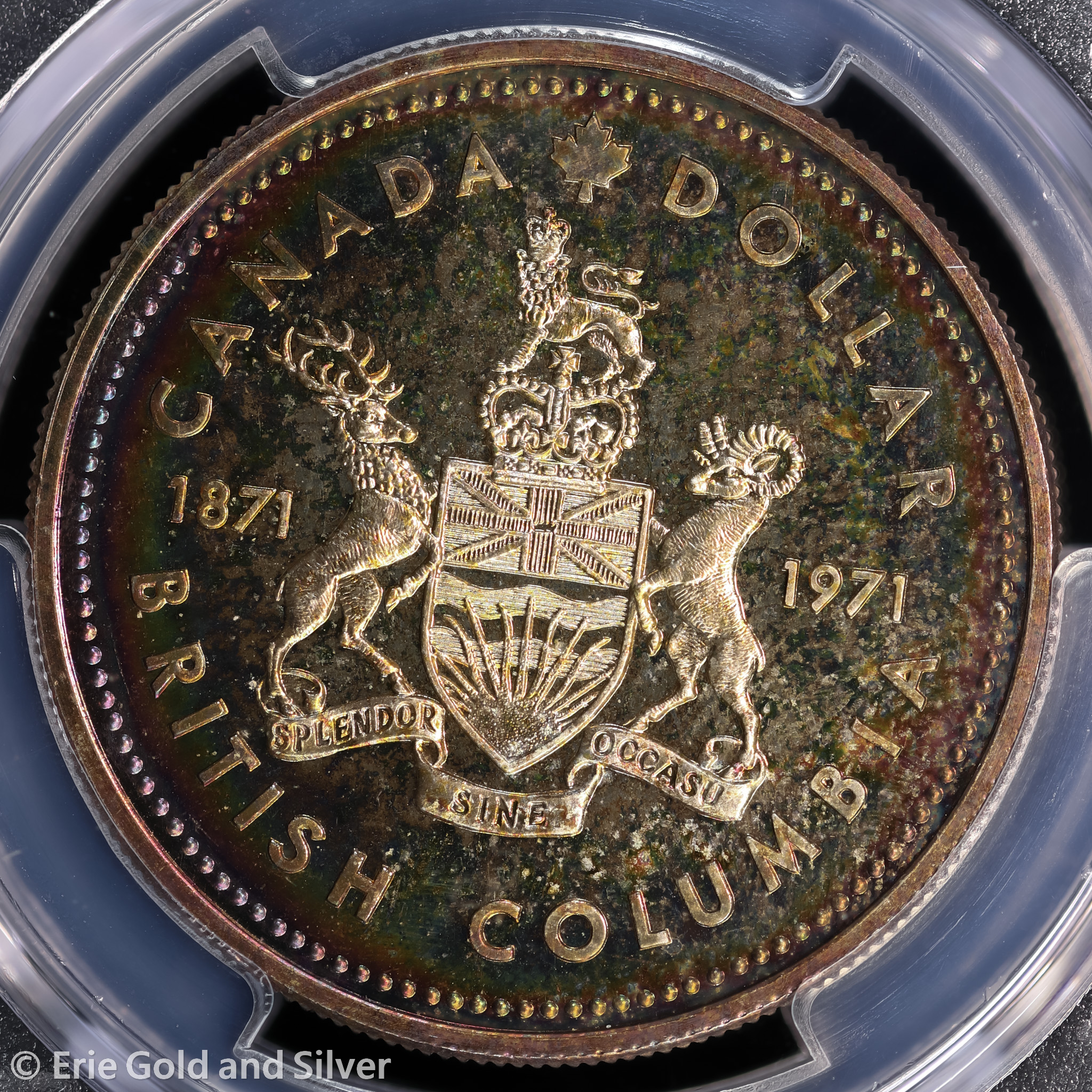 1971 Canada British Columbia Centennial Silver Dollar PCGS SP 67 | Rainbow Toned