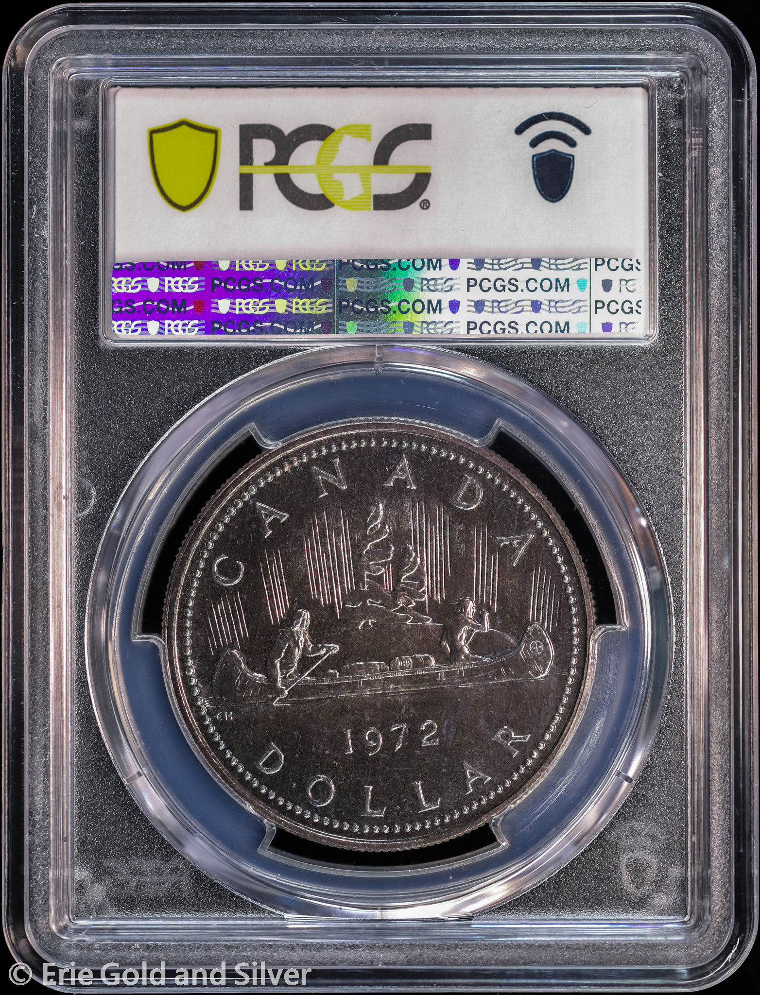 For sale is a 1972 Canada Elizabeth II Voyageur Silver Dollar. Certified / graded by PCGS at SP 66.