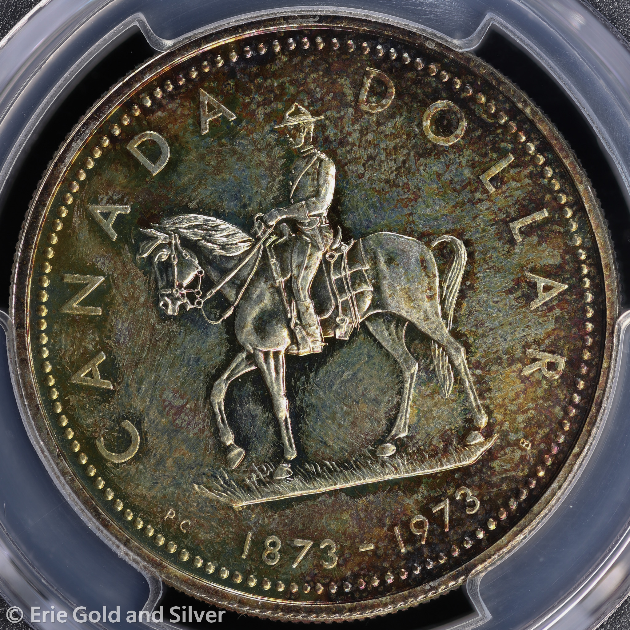 1973 $1 Canada Royal Canadian Mounted Police Silver Dollar PCGS SP 67 | Toned
