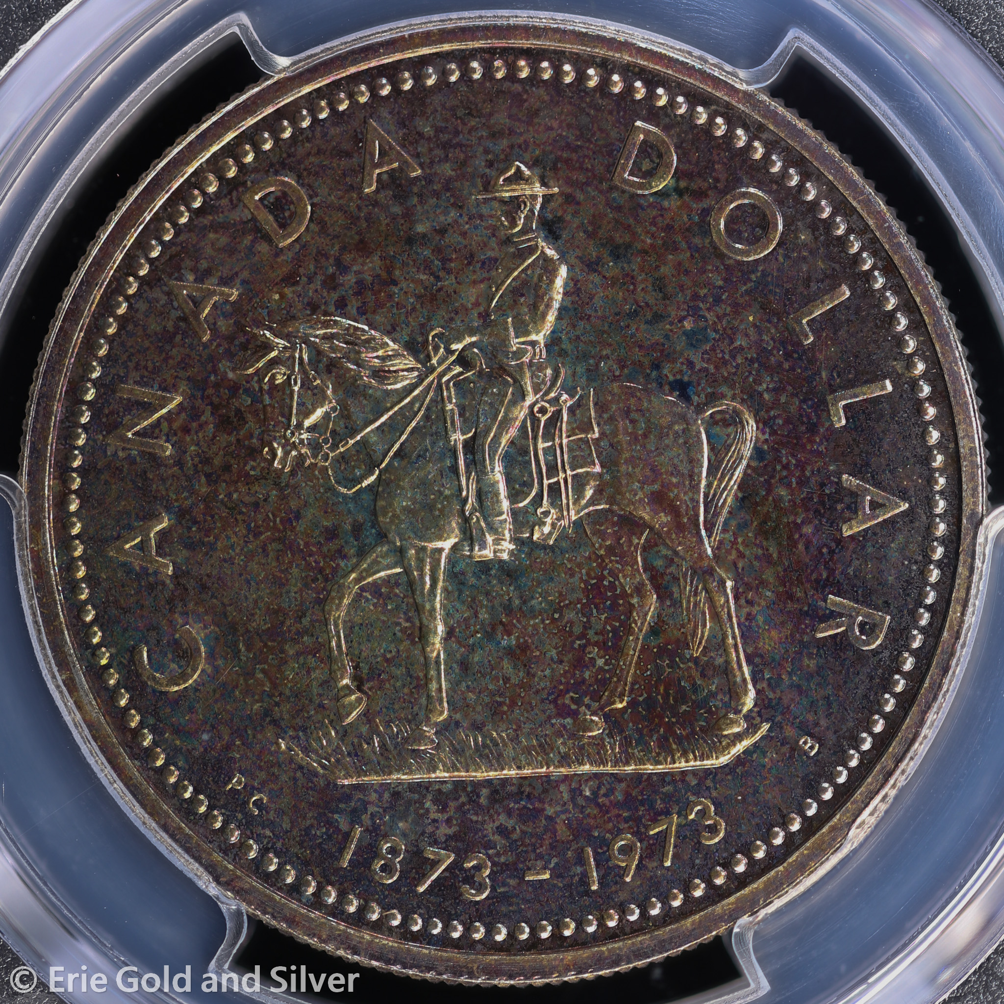1973 $1 Canada Royal Canadian Mounted Police Silver Dollar PCGS SP 67 | Toned