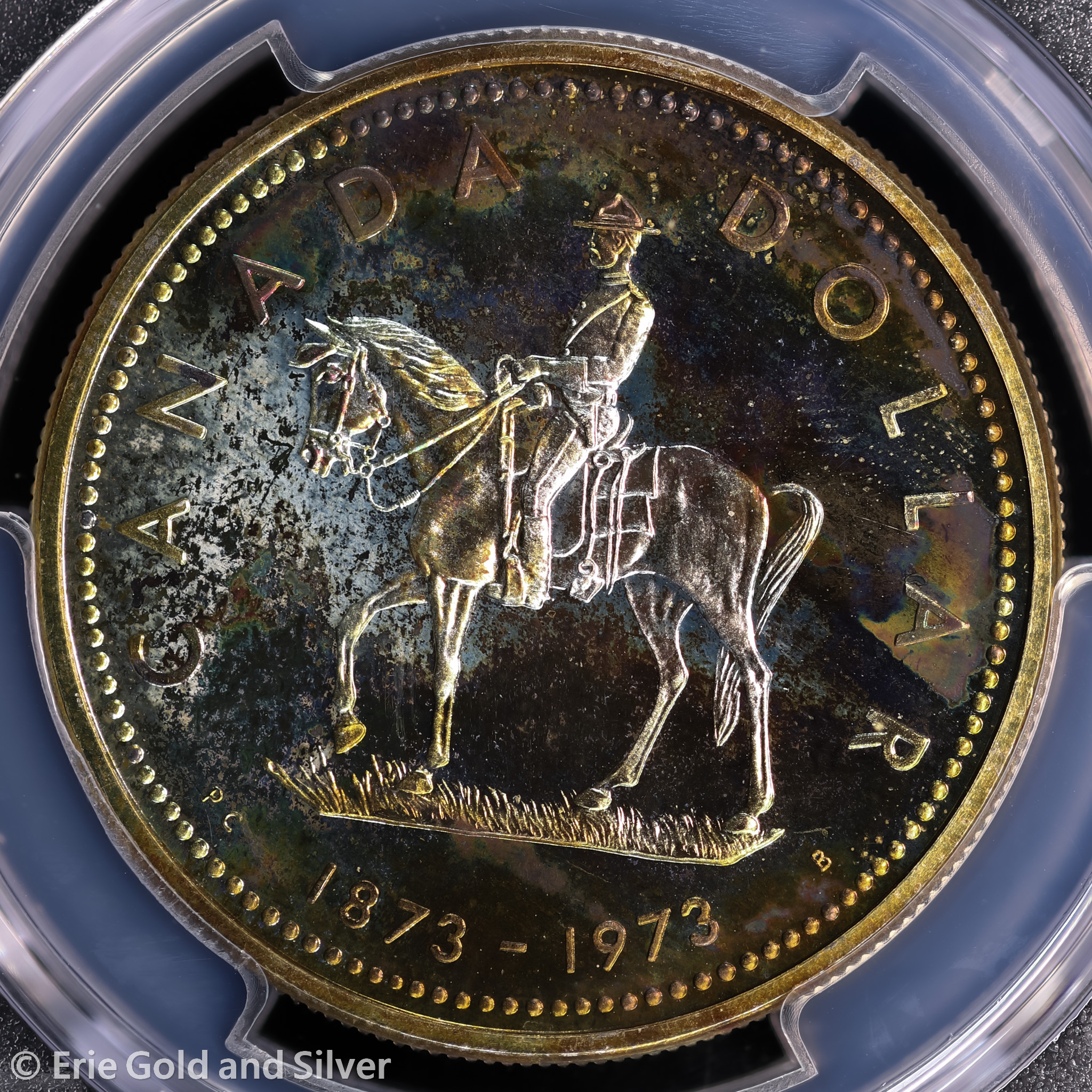1973 Canada Royal Canadian Mounted Police Silver Dollar PCGS SP 68 | Toned
