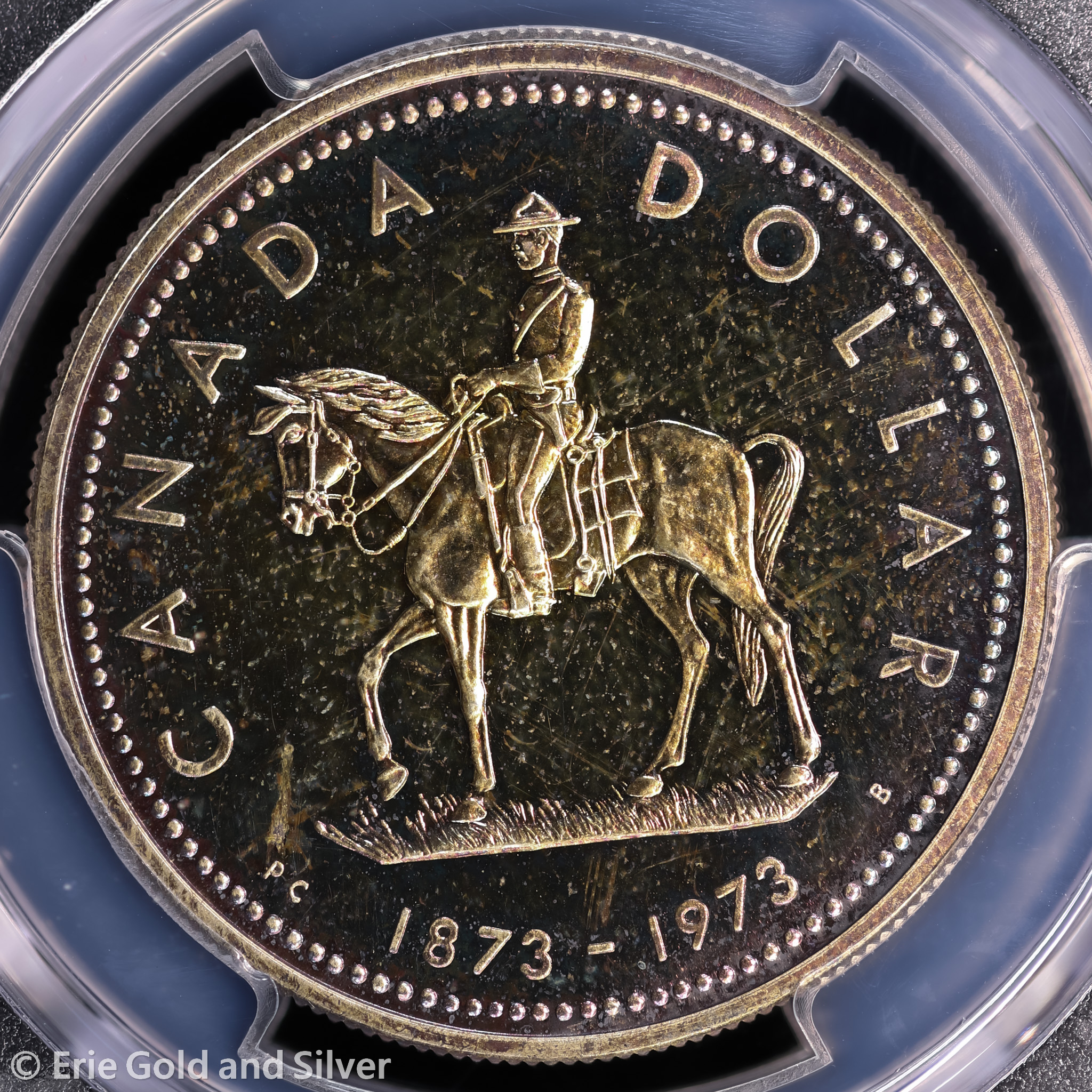 1973 Canada Royal Canadian Mounted Police Silver Dollar PCGS SP 68 | Toned