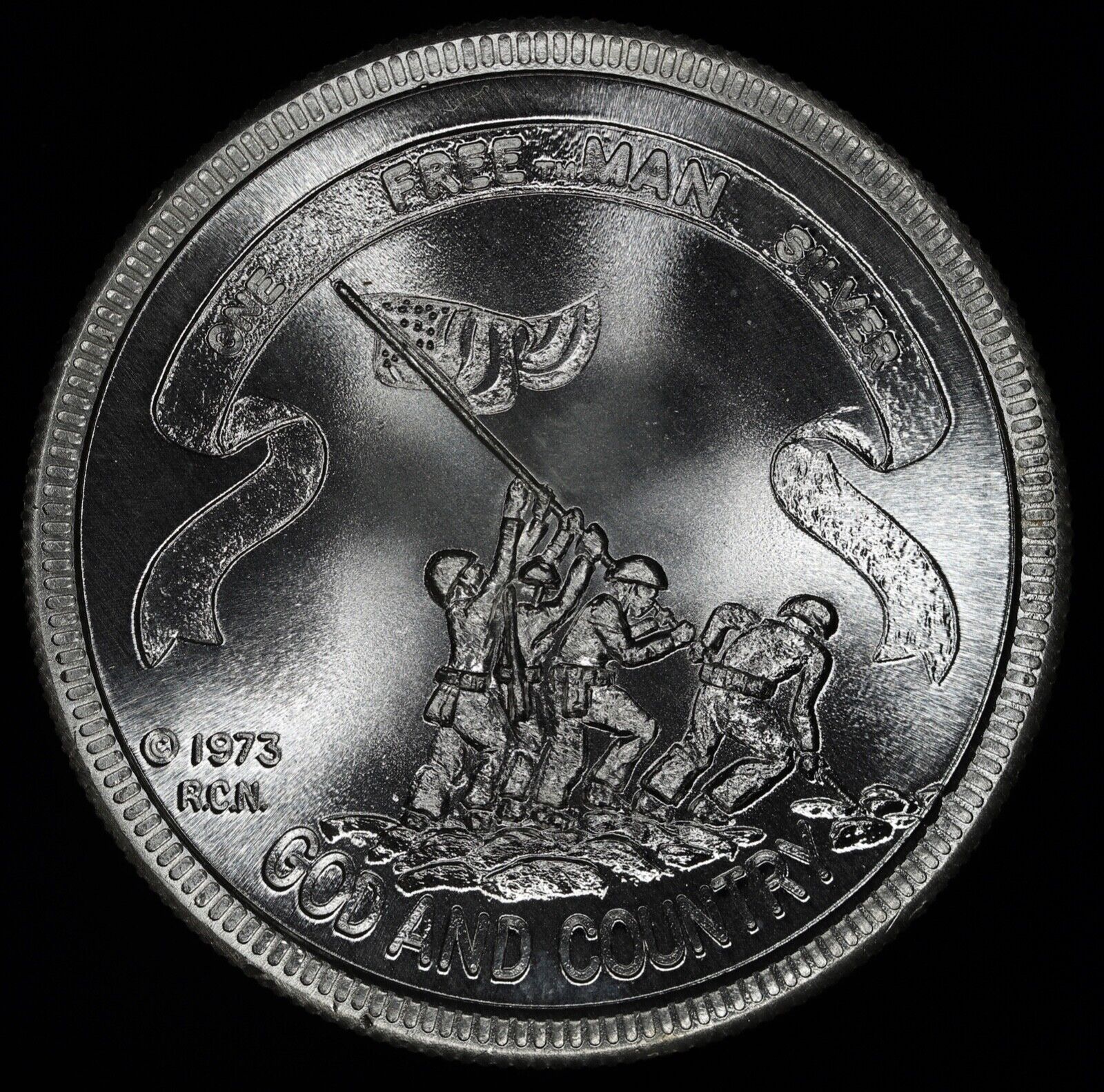 1973 RCN One Free Man Silver God and Country 1 oz .999 Fine Silver Round