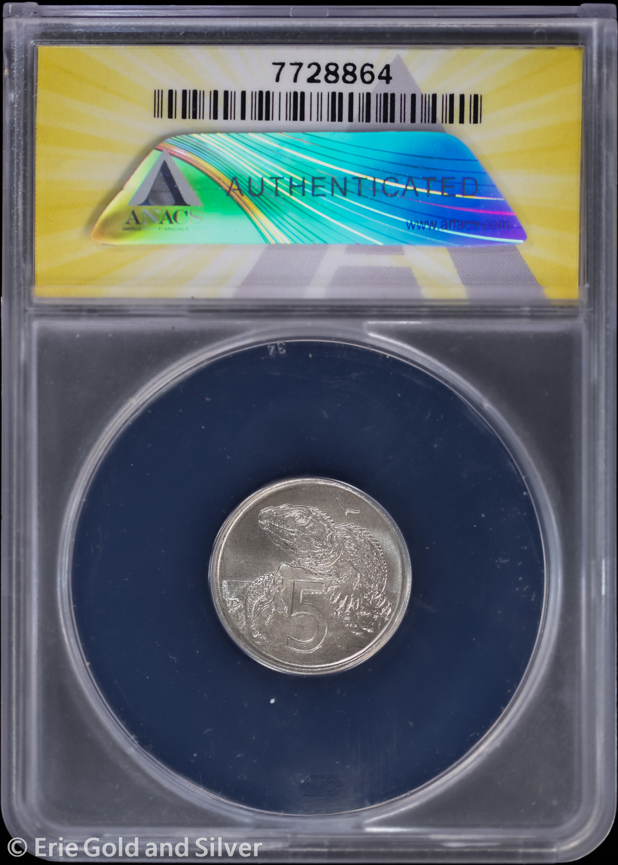 1974 New Zealand Elizabeth II 5 Cents ANACS MS 67