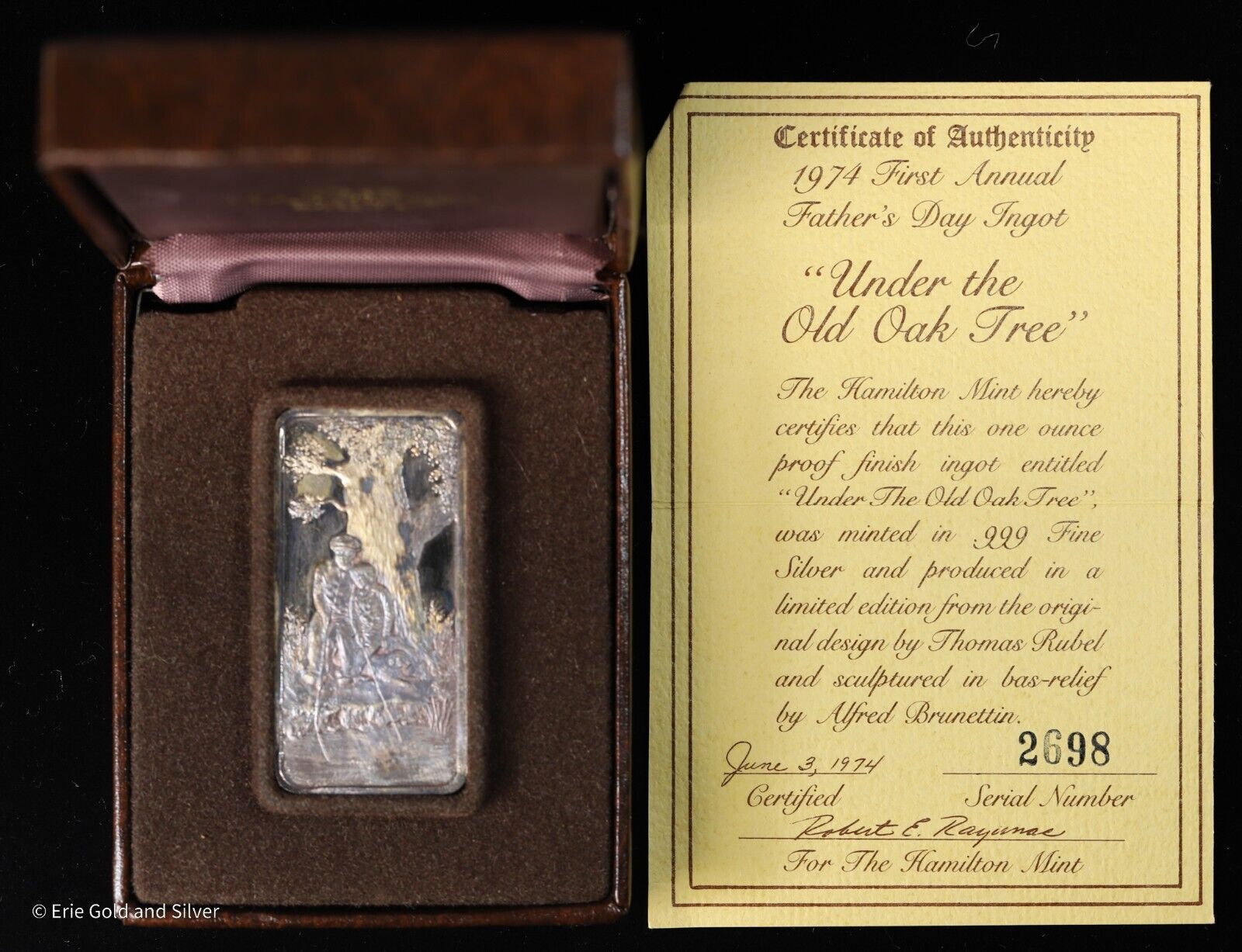 1974 Annual Father's Day Under the Old Oak Tree 1 oz Silver Ingot in Box w/ COA