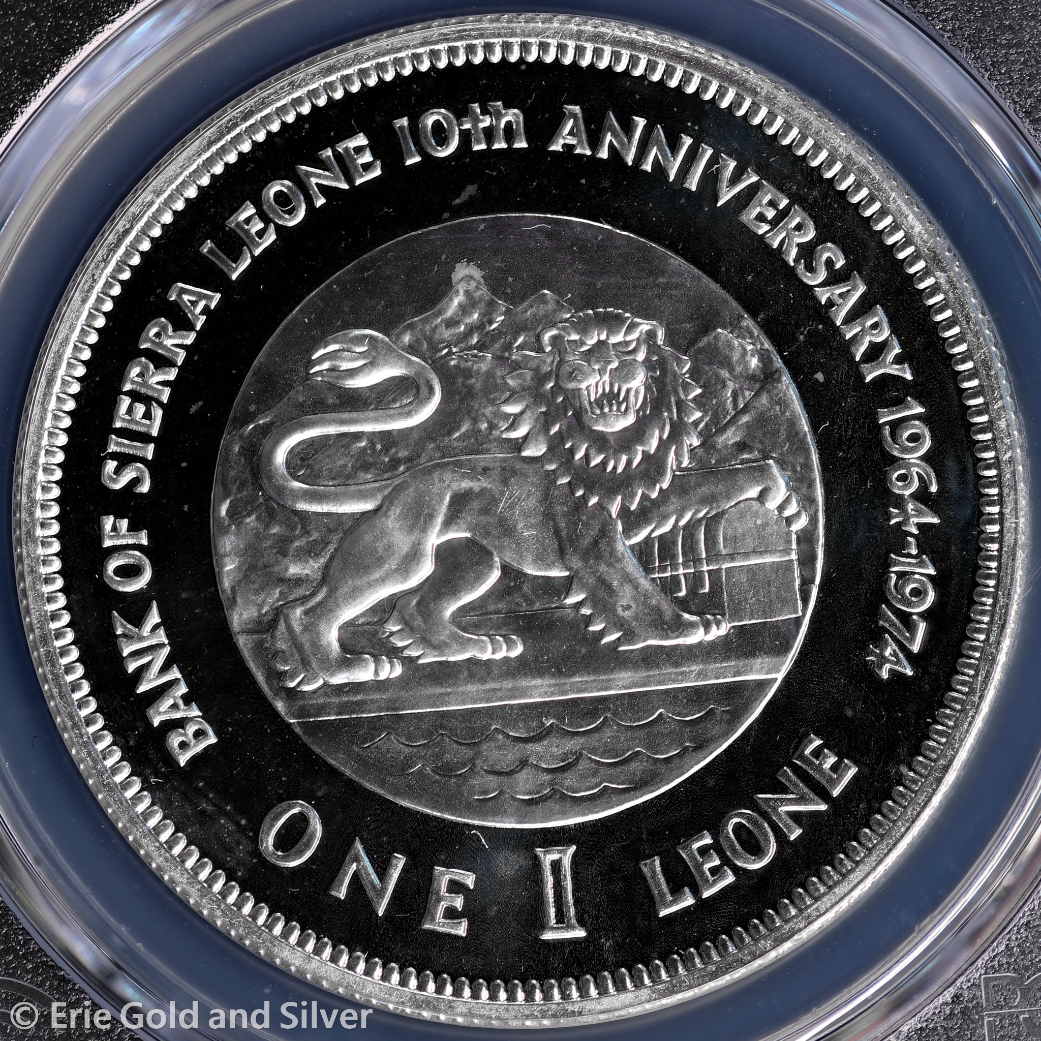 1974 Bank of Sierra Leone 10th Anniversary Commemorative Silver Proof Coin PCGS PR 68