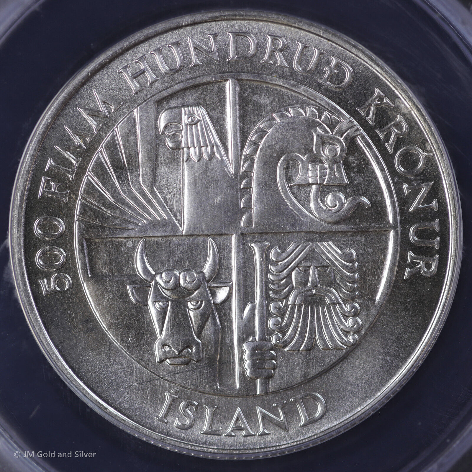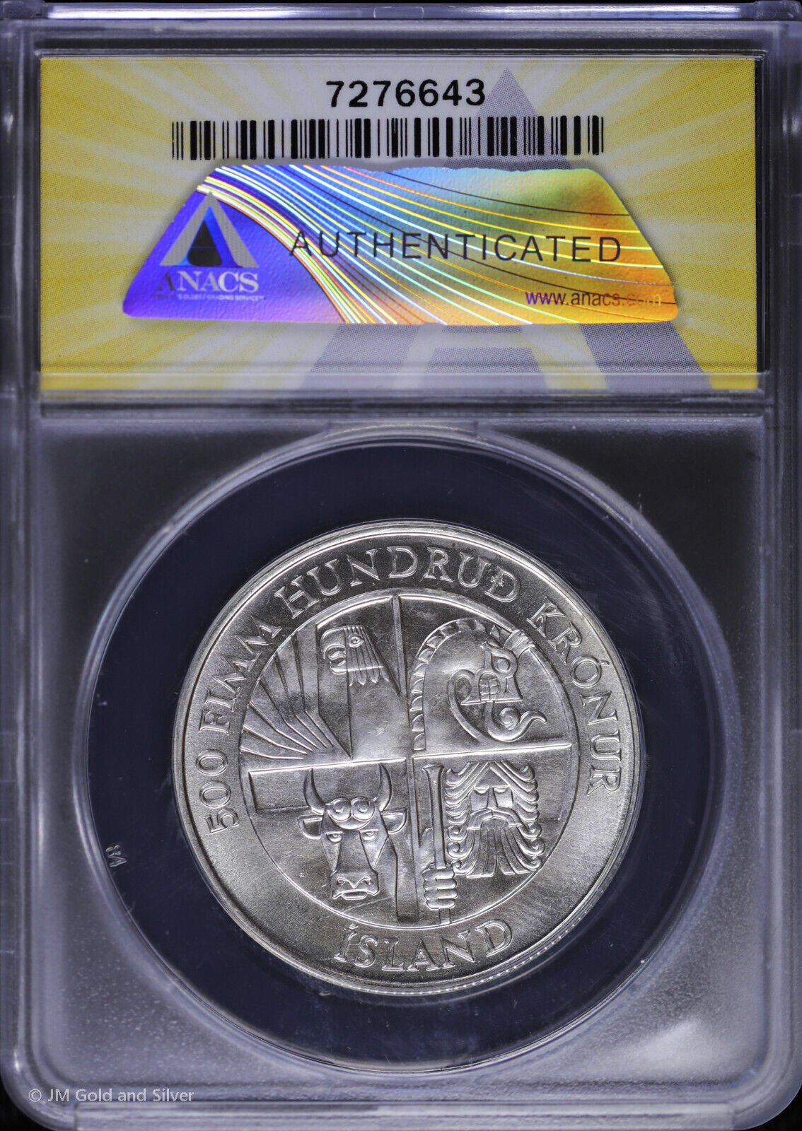 1974 Iceland Silver 500 Kronur ANACS MS 67 | 1100th Ann 1st Settlement 1 Yr Type