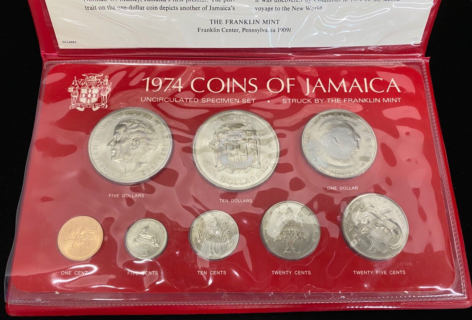 For sale is a 1974 Jamaica Uncirculated Specimen Set Franklin Mint with COA Hummingbird. View pictures for details and condition, the coin pictured is the exact coin you will receive. Feel free to contact us with any questions.