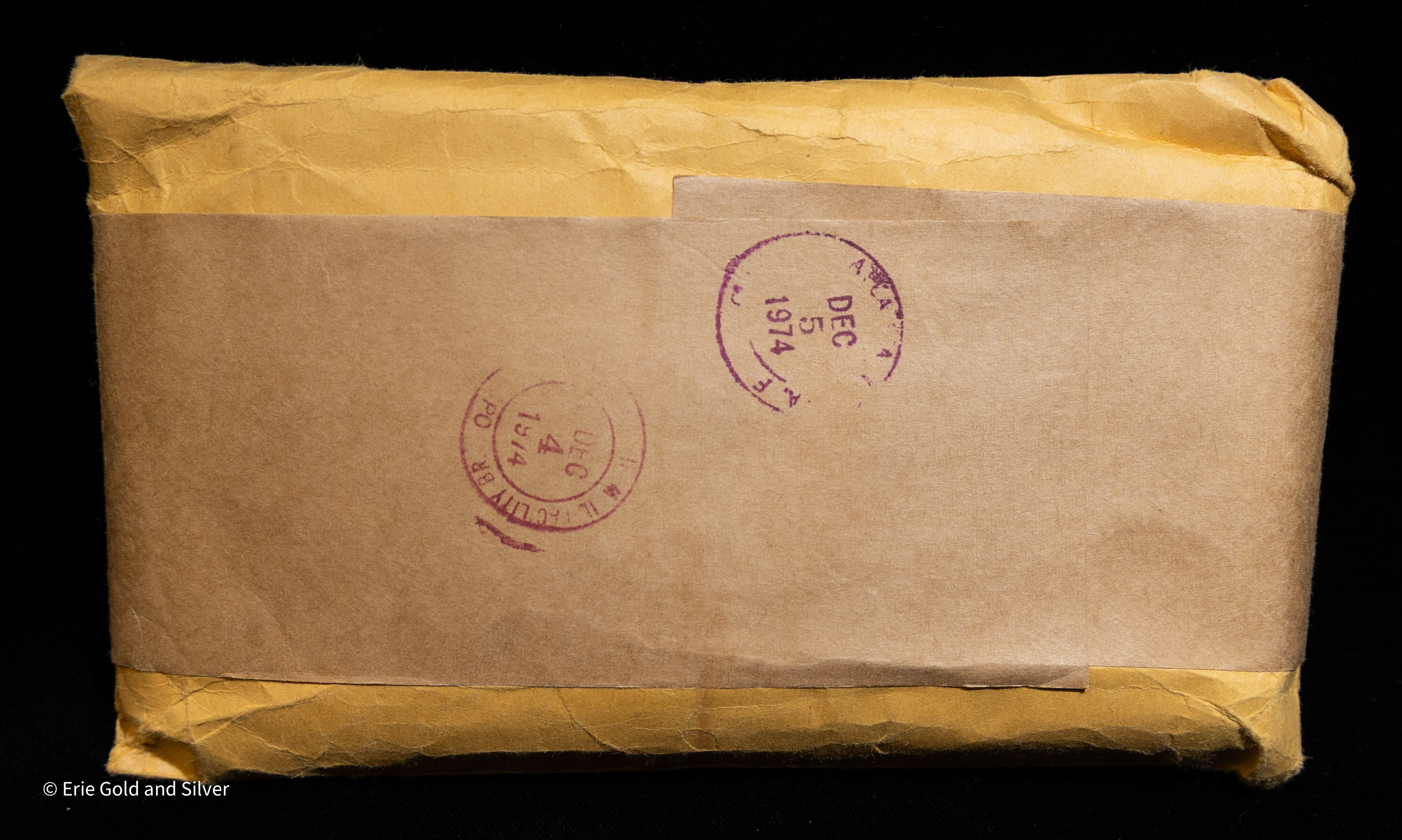 Packaged exactly as issued, this 1974‑S Eisenhower Blue Ike Silver Dollar set includes five Brilliant Uncirculated 40% silver Ike dollars, still sealed in their original U.S. Mint blue envelopes with certificates of authenticity intact. Beloved by collectors for its untouched presentation and vintage appeal, this set offers a nostalgic window into early 1970s Mint packaging and premium quality.