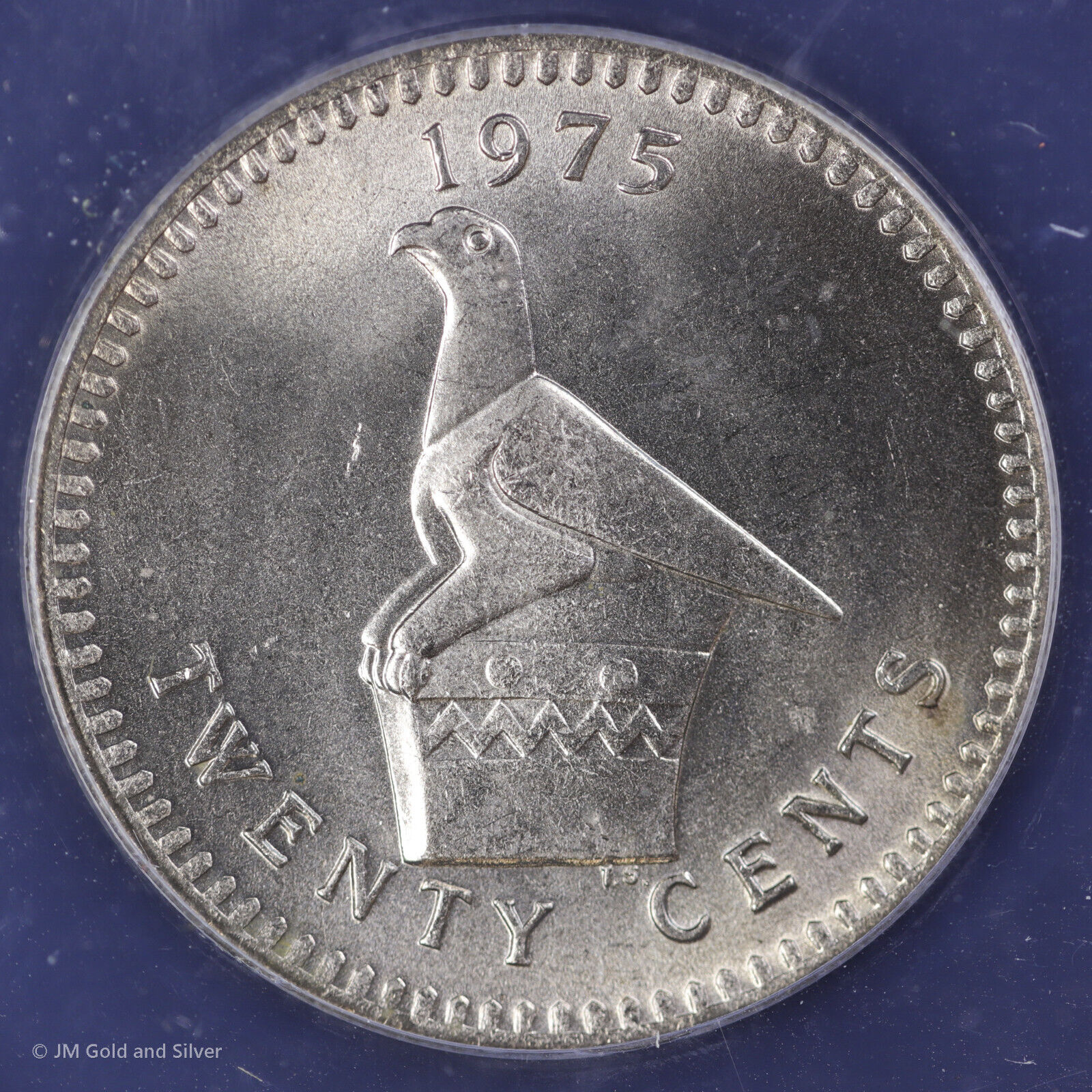 1975 20C Rhodesia 20 Cents Pre-Zimbabwe ANACS MS 65 | Uncirculated UNC BU