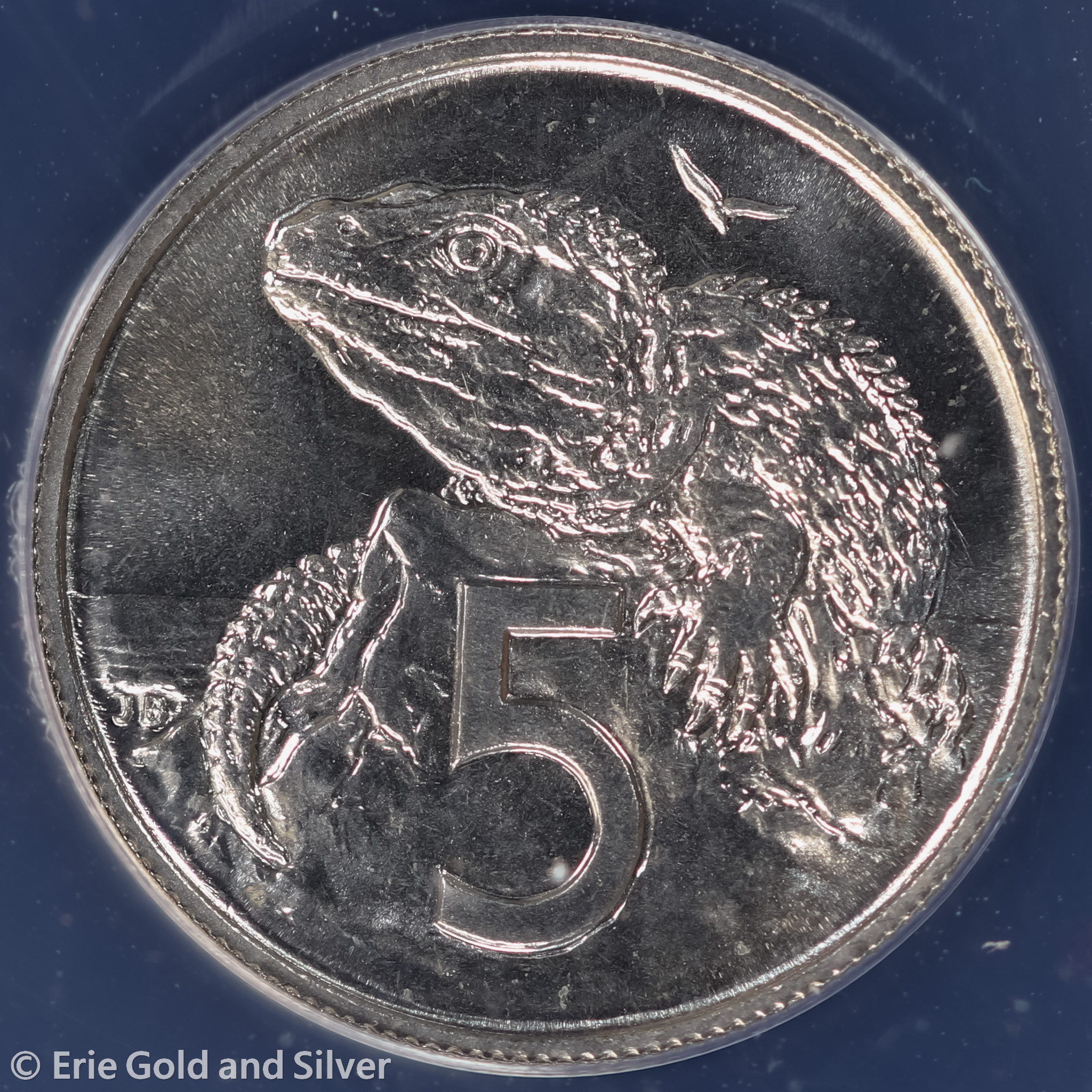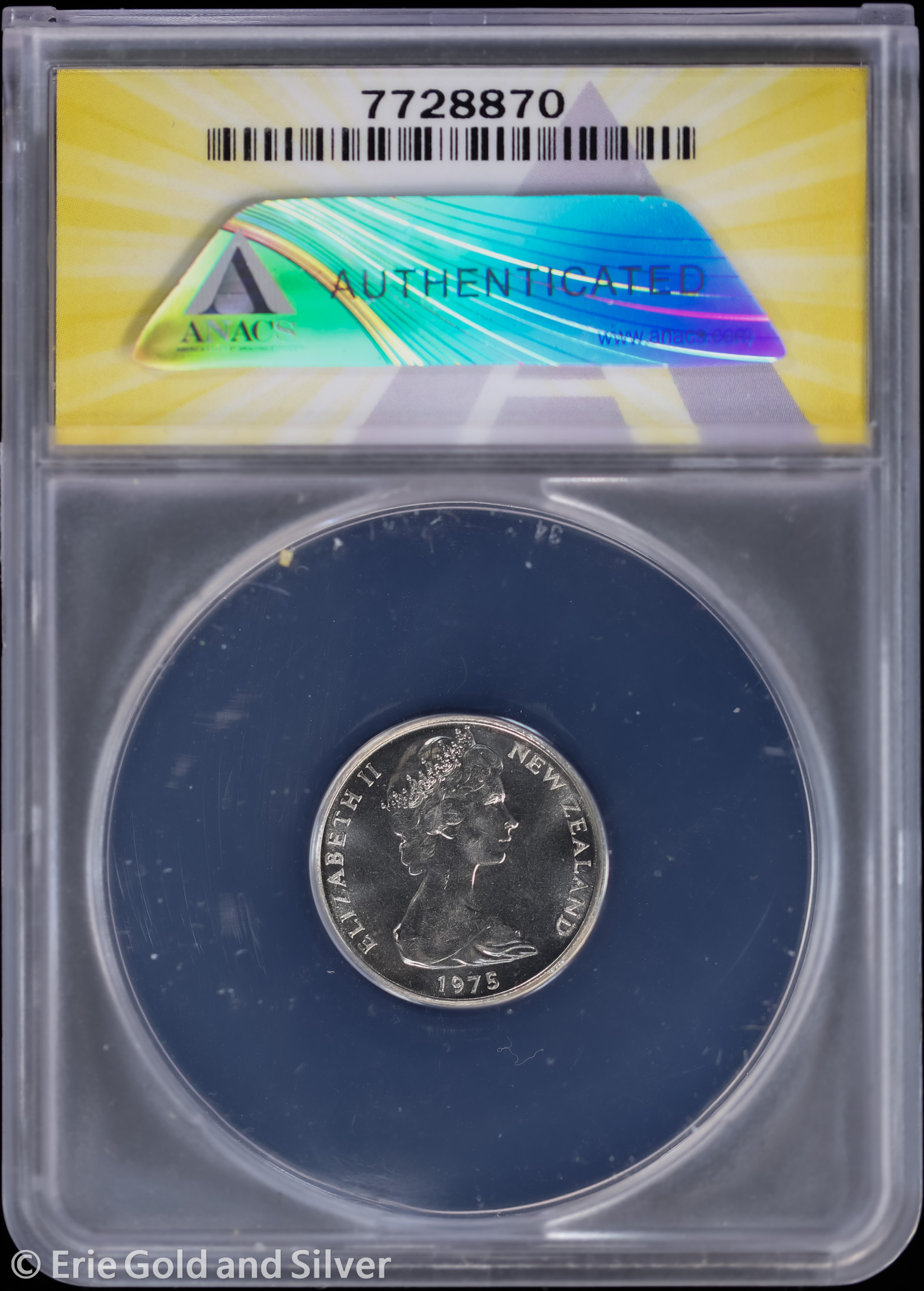 1975 New Zealand Elizabeth II 5 Cents ANACS MS 68