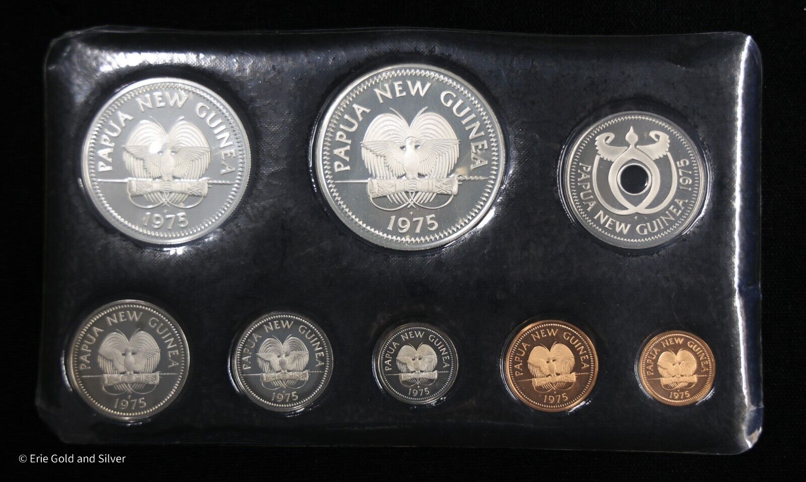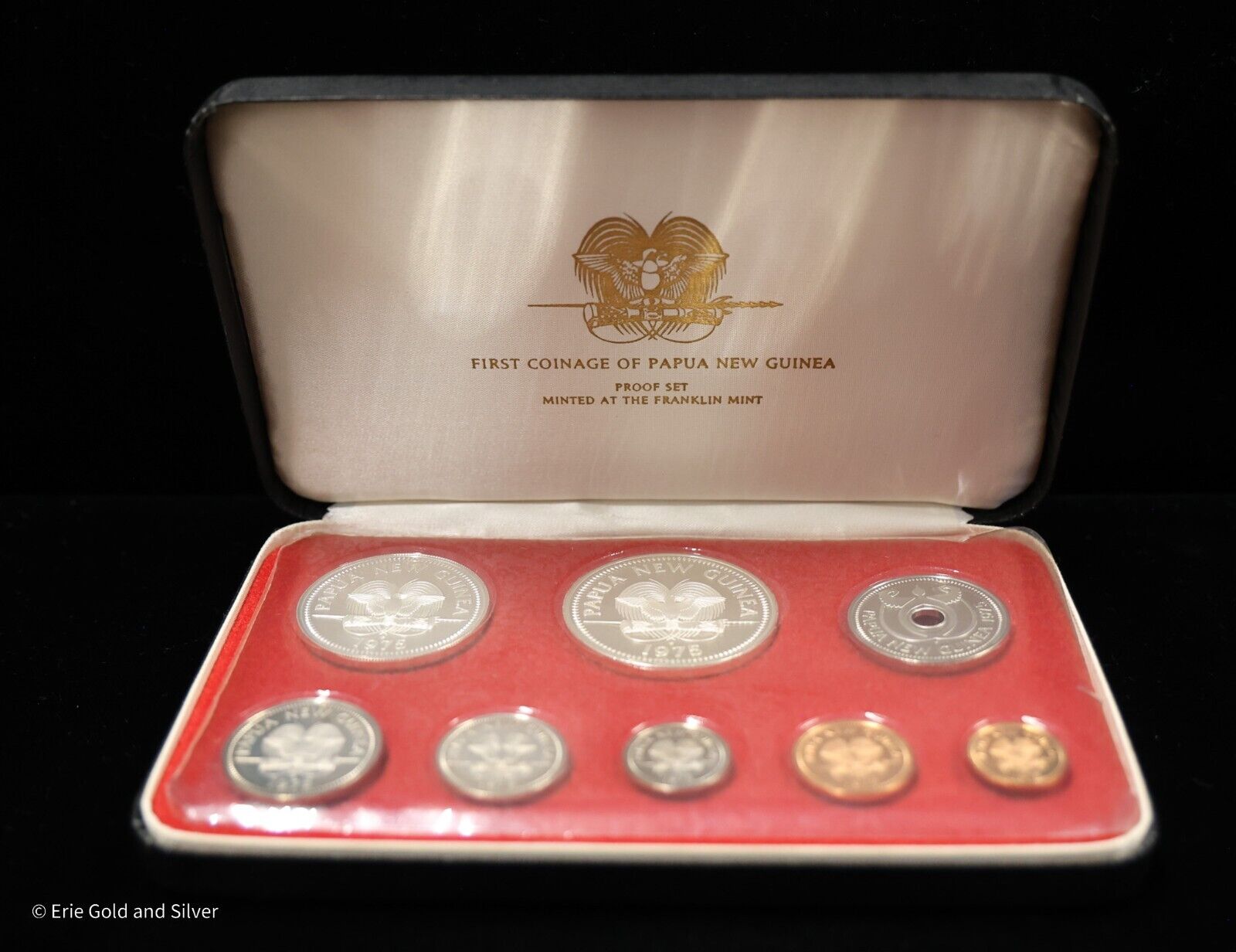 1975 First Coinage of Papua New Guinea Franklin Mint Silver Proof Set in Box