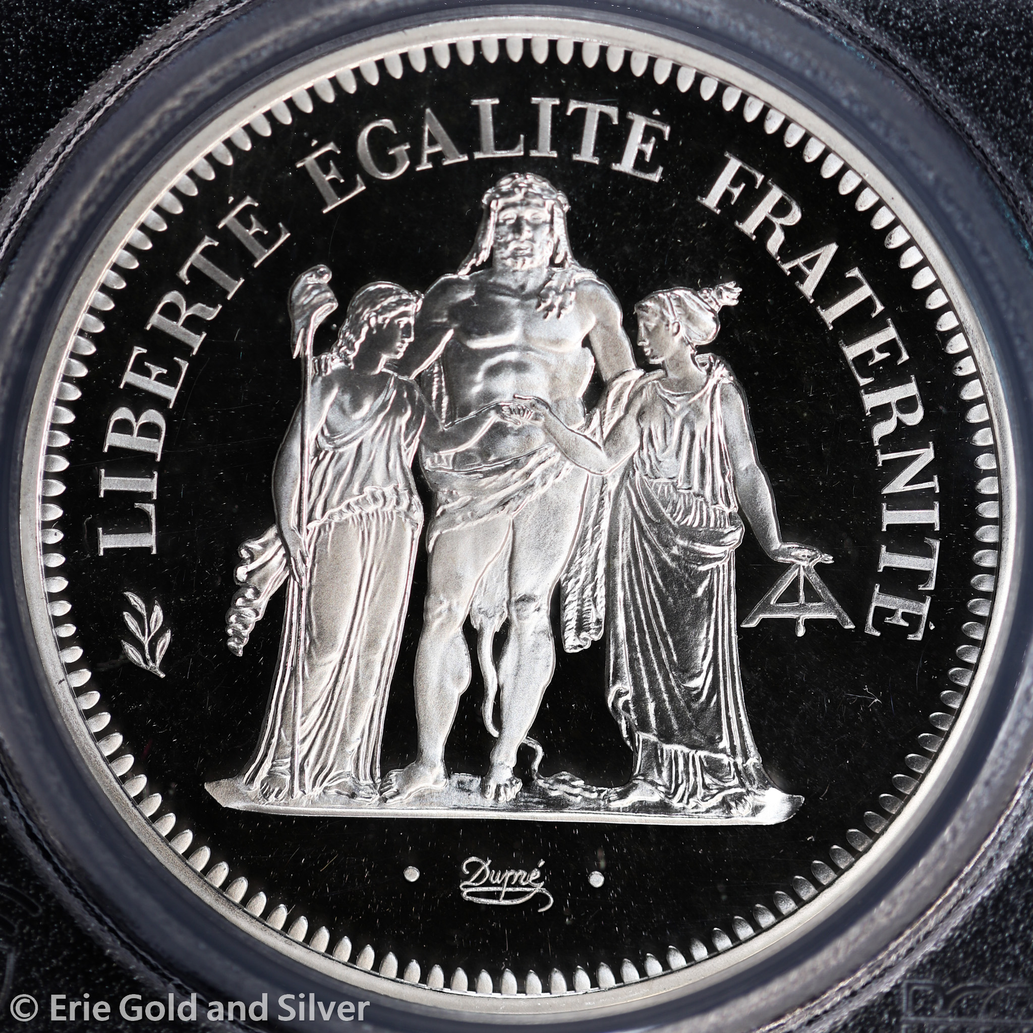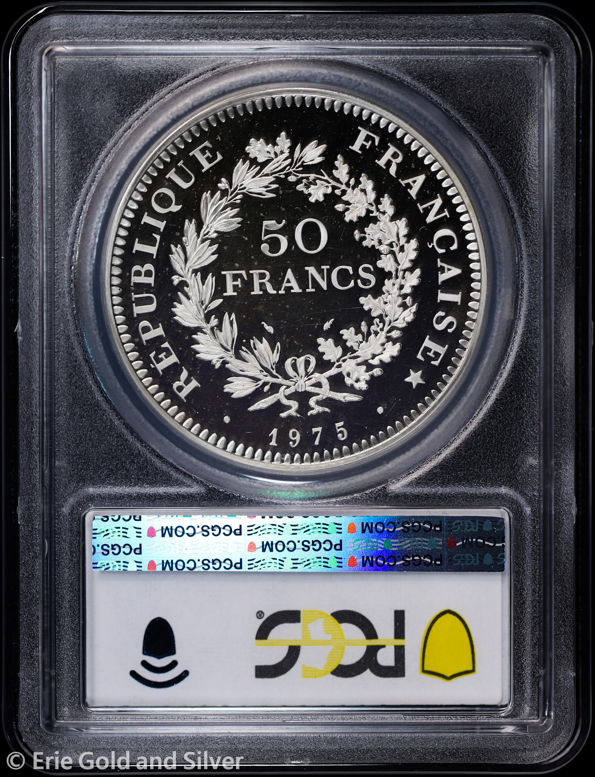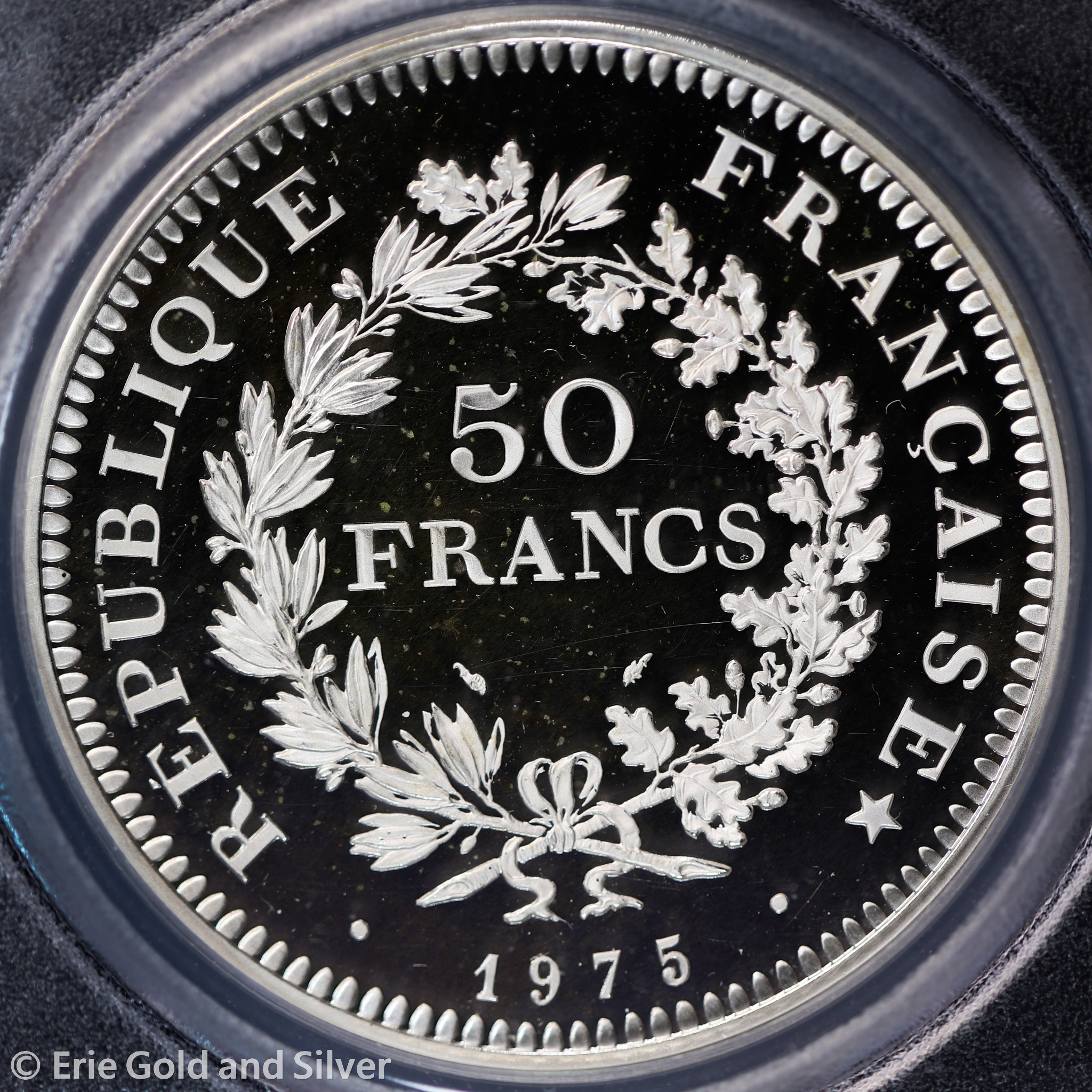 For sale is a 1975 France Hercules Piefort Silver 50 Francs. Certified / graded by PCGS at SP 68.