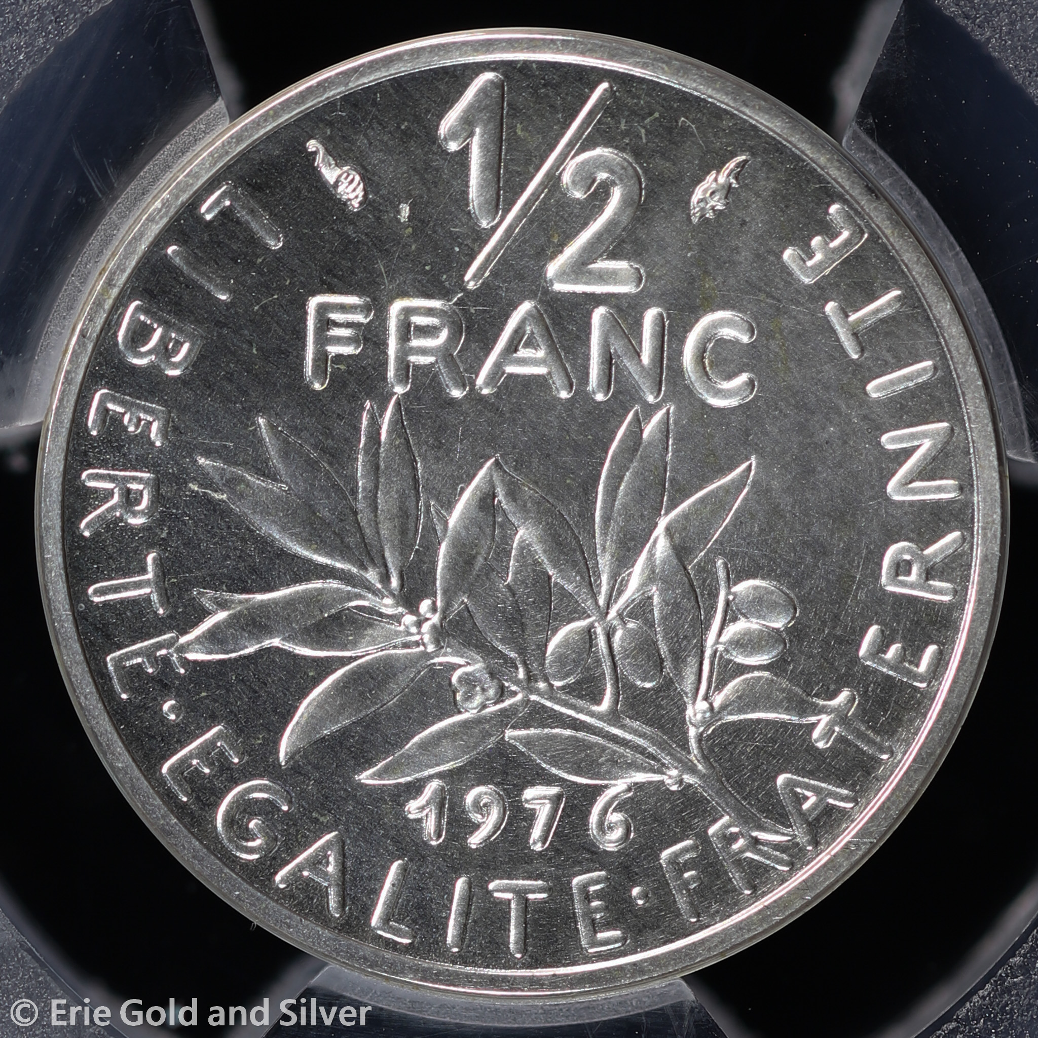 For sale is a 1976 France Silver Piefort 1/2 Franc Coin. Certified / graded by PCGS at SP 69.