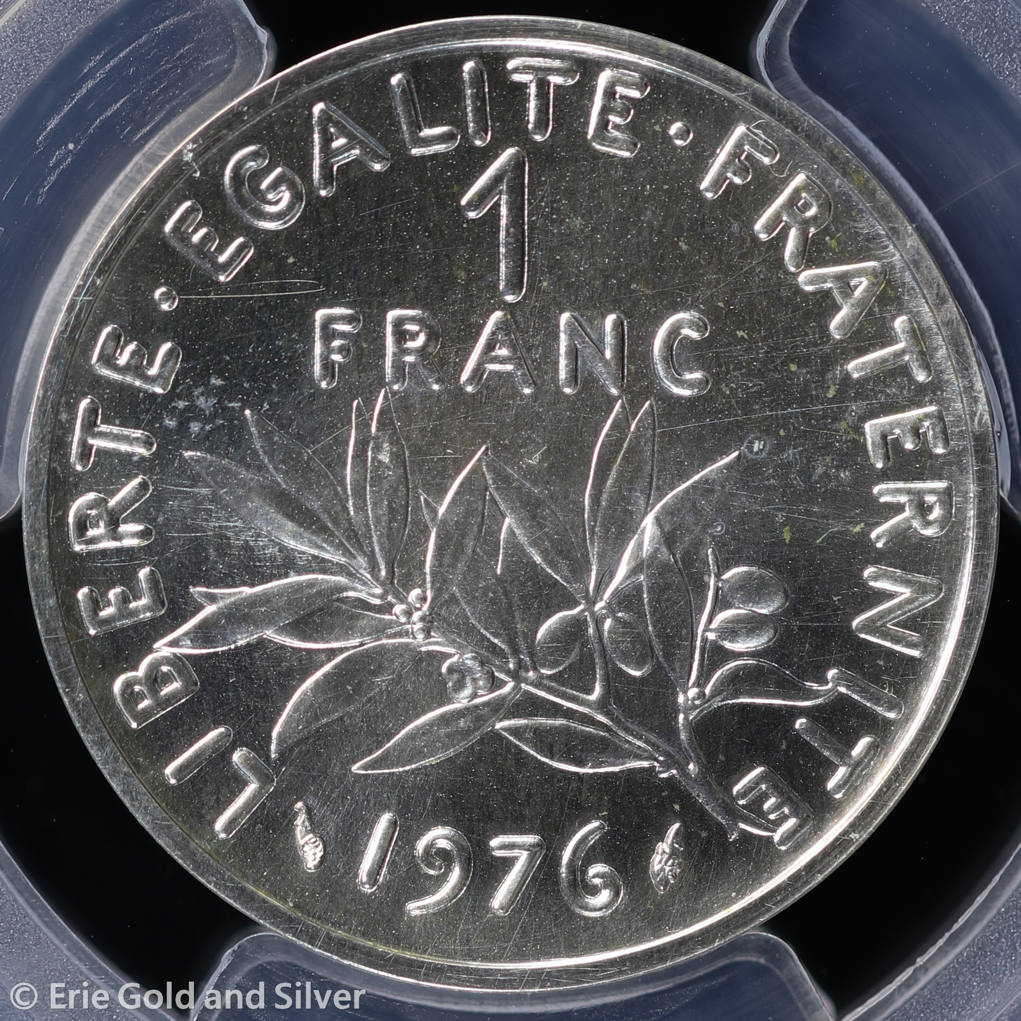 For sale is a 1976 France Silver Piefort 1 Franc Coin. Certified / graded by PCGS at SP 69.