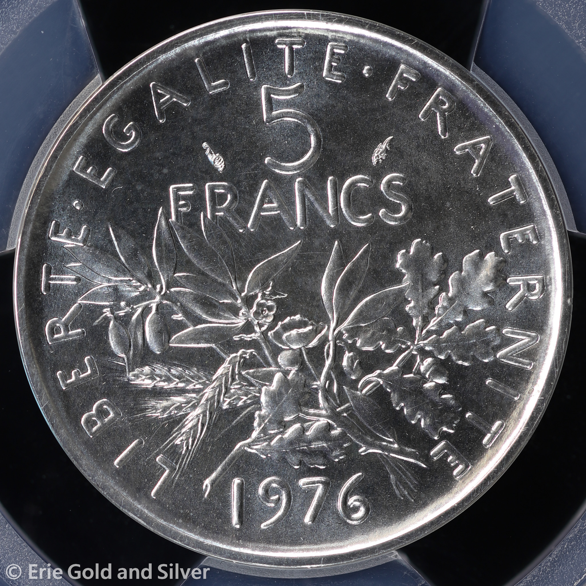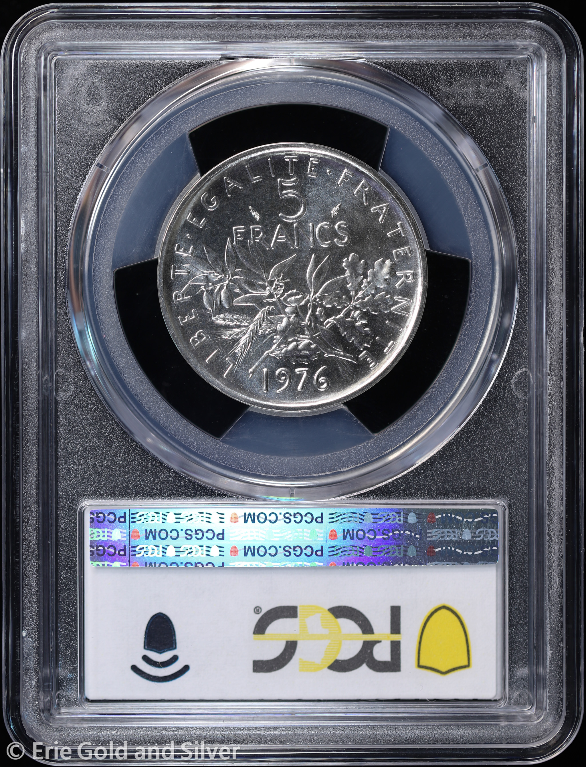 For sale is a 1976 France Silver Piefort 5 Francs Coin. Certified / graded by PCGS at SP 69.