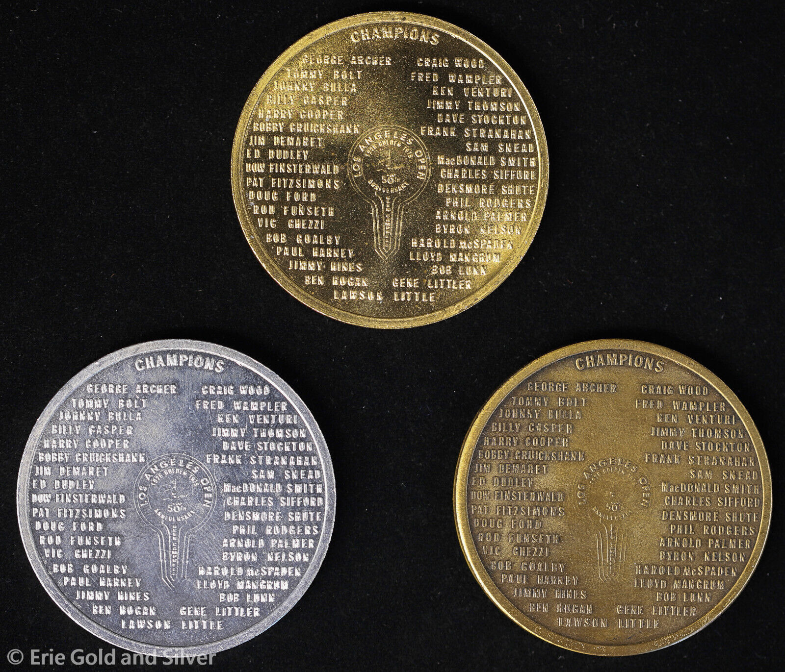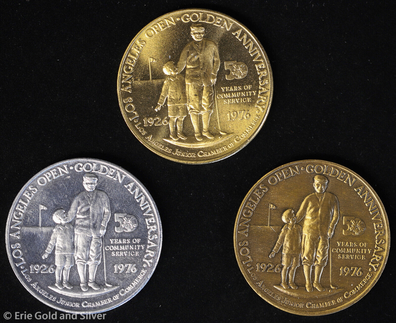 1976 Los Angeles Open Golden 50th Anniversary 3 Medal Set in Display Box