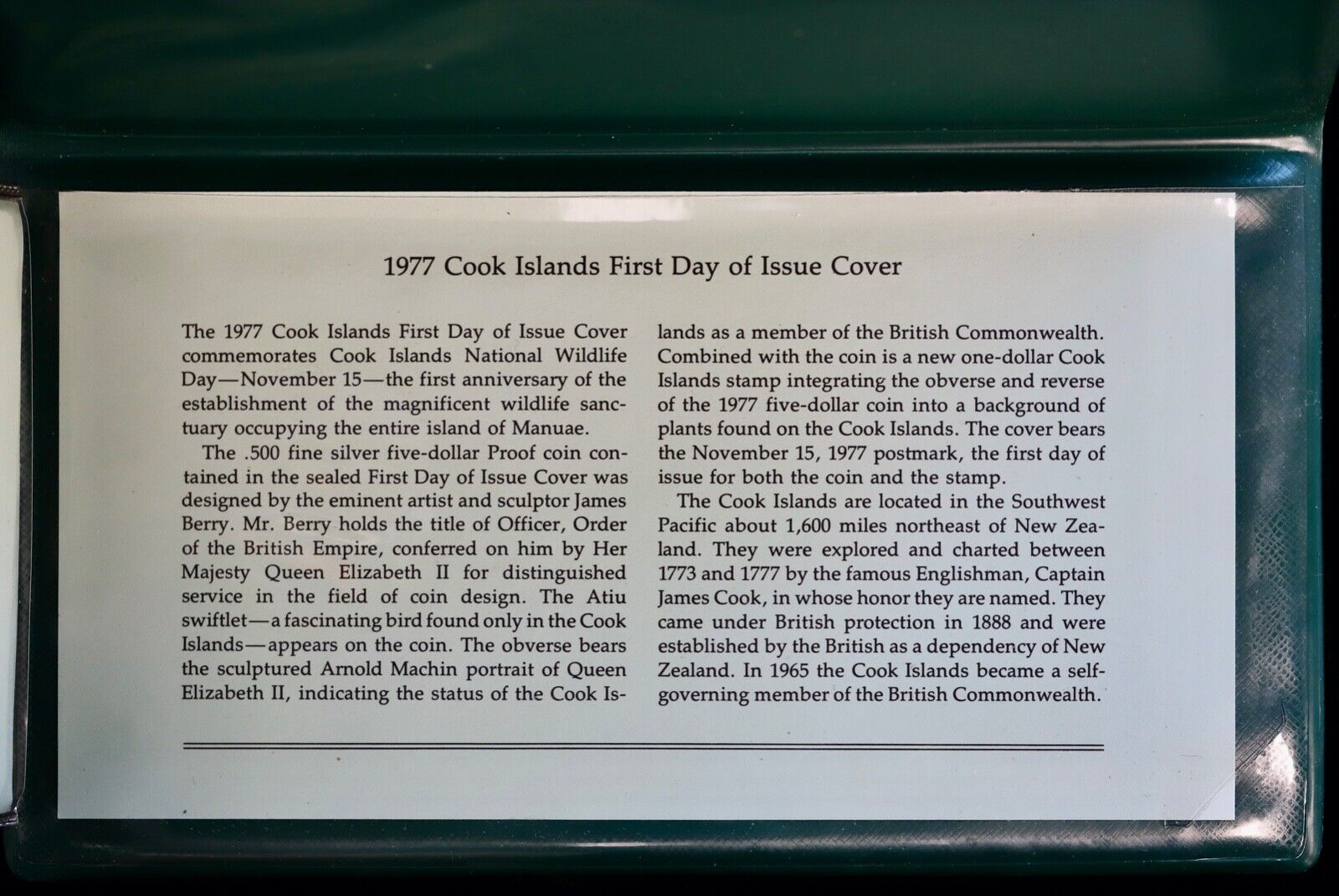 1977 Cook Island Commemorative Medal & Cachet .500 Fine Silver