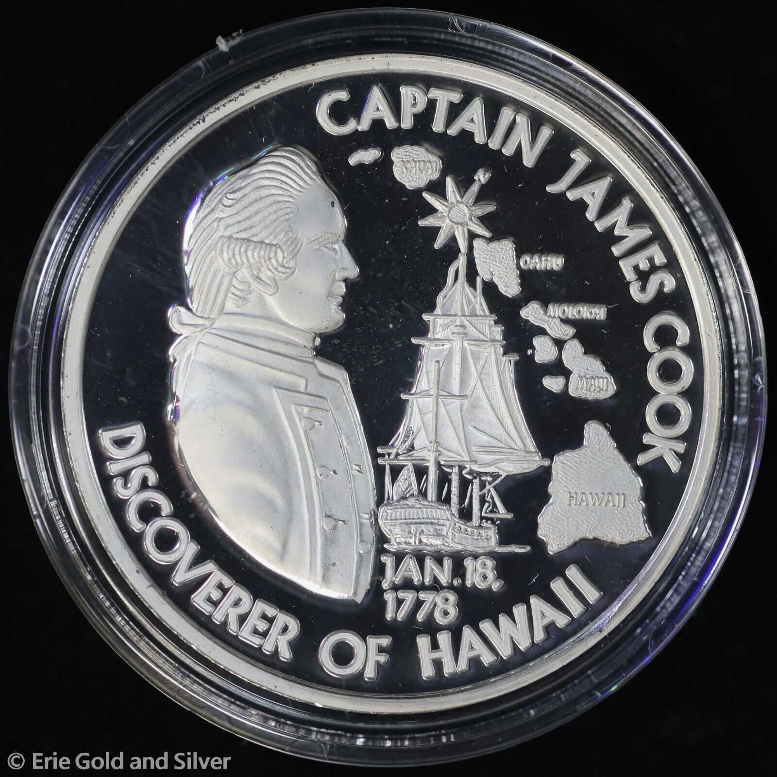 1978 Hawaii Kamehameha & Captain James Cook 1 oz Pure Silver Medal