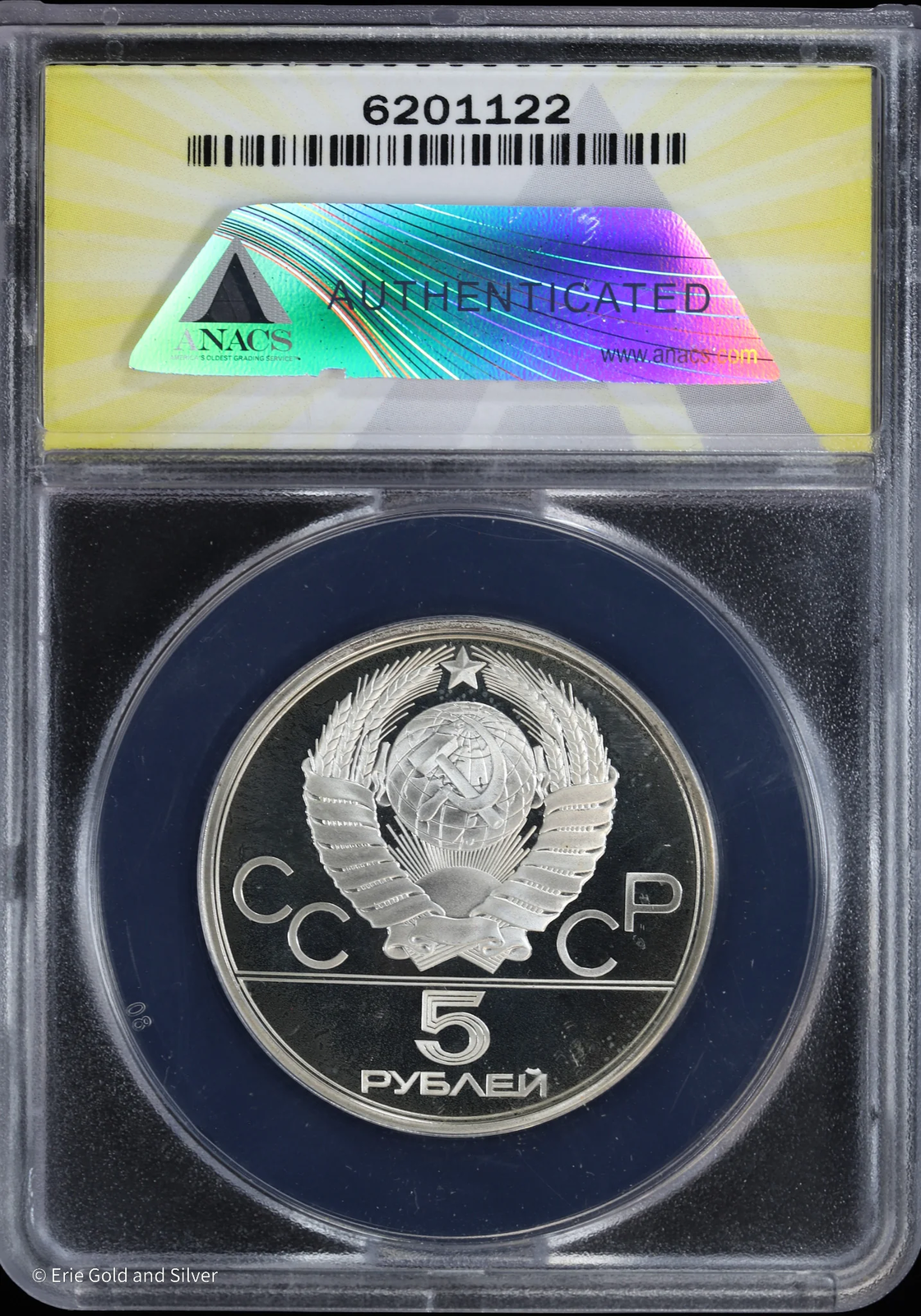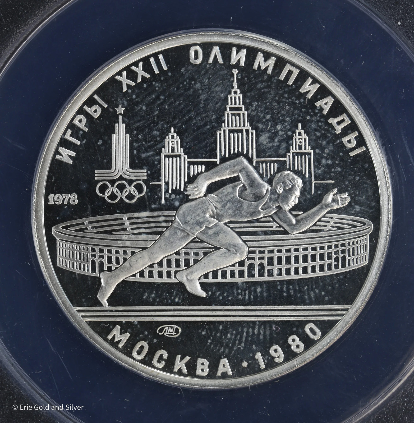 1978 USSR 10 Roubles Silver Proof Olympics Runner/ Stadium ANACS PF 67 DCAM