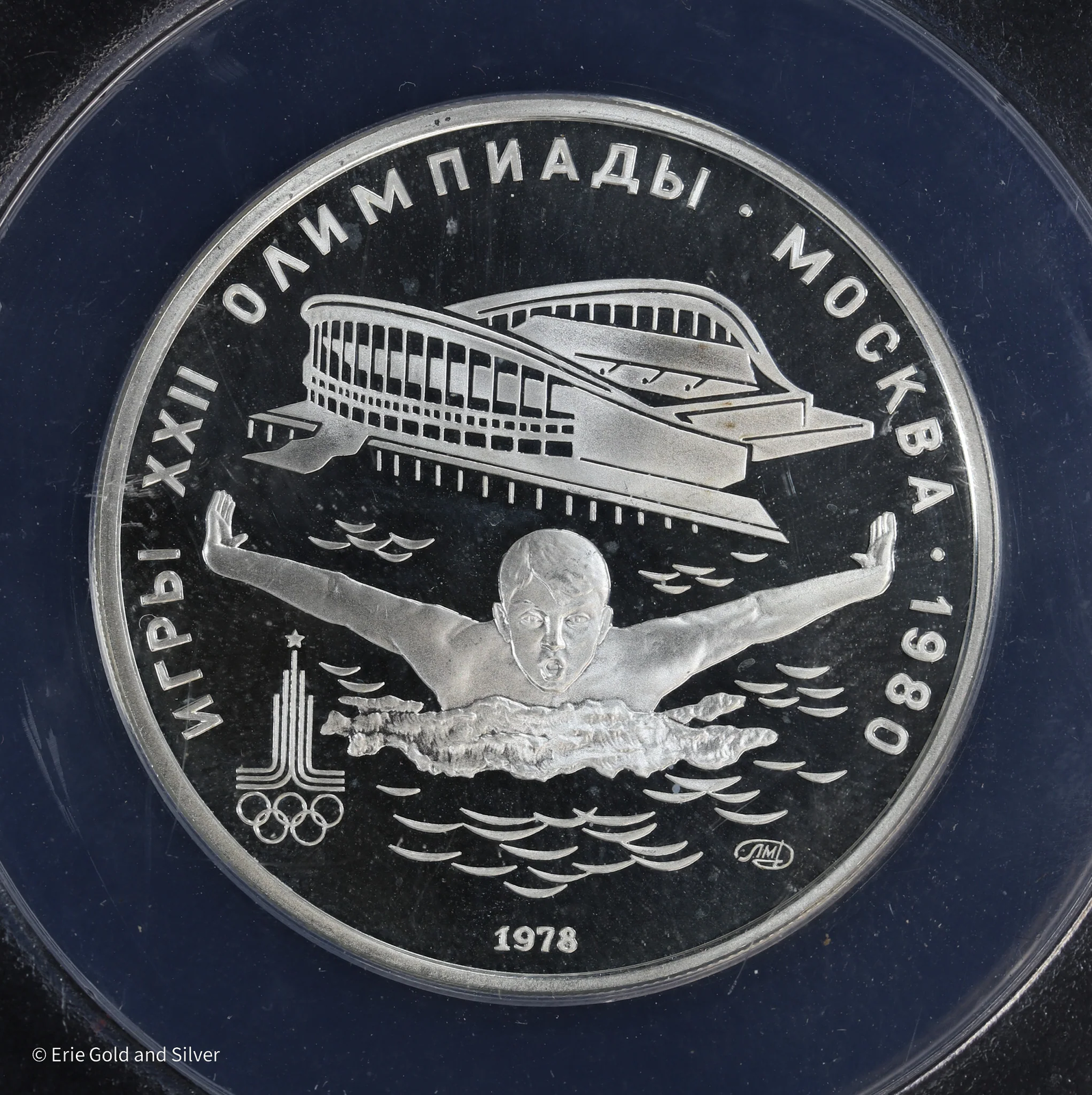 1978 USSR 10 Roubles Silver Proof Olympics Swimming ANACS PF 67 DCAM
