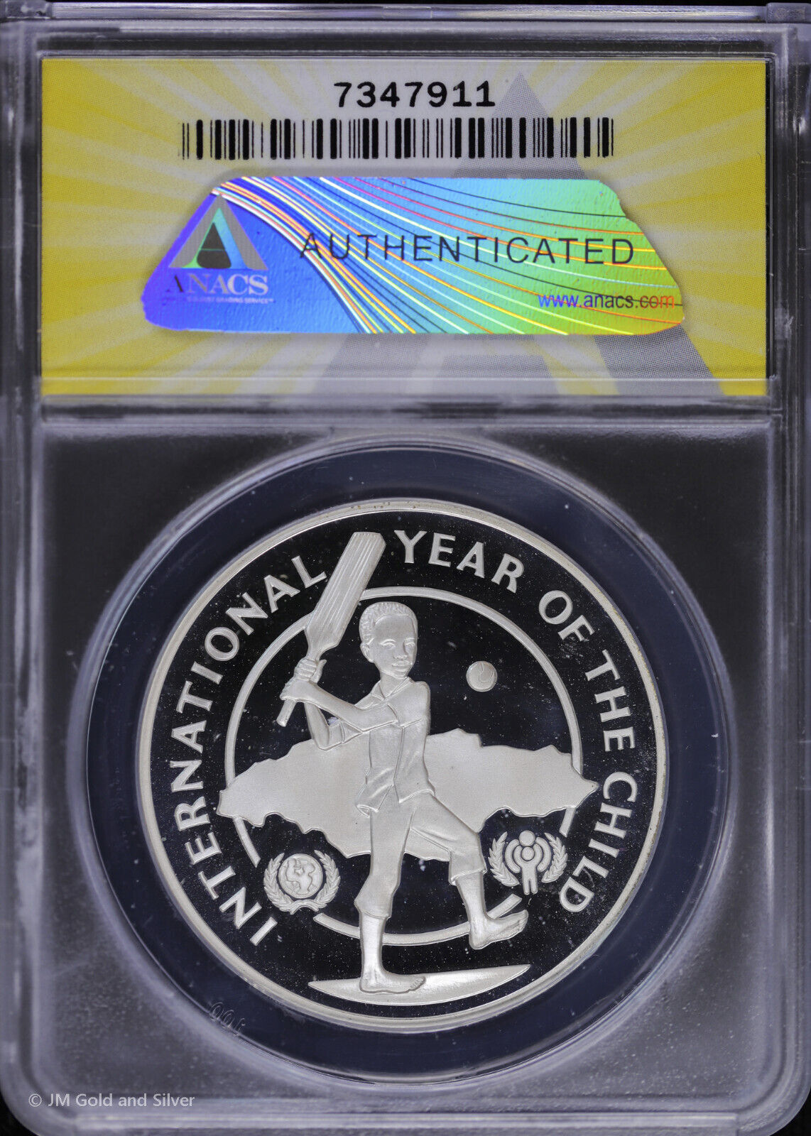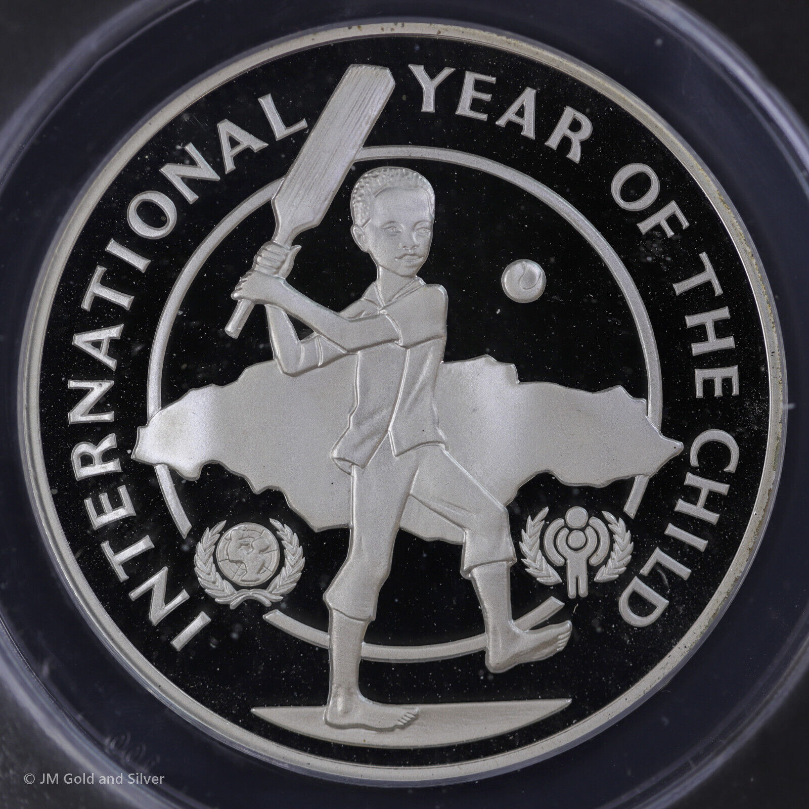 1979 $10 Jamaica Proof Silver Child Playing Cricket ANACS PF 69 DCAM | 1 Yr Type