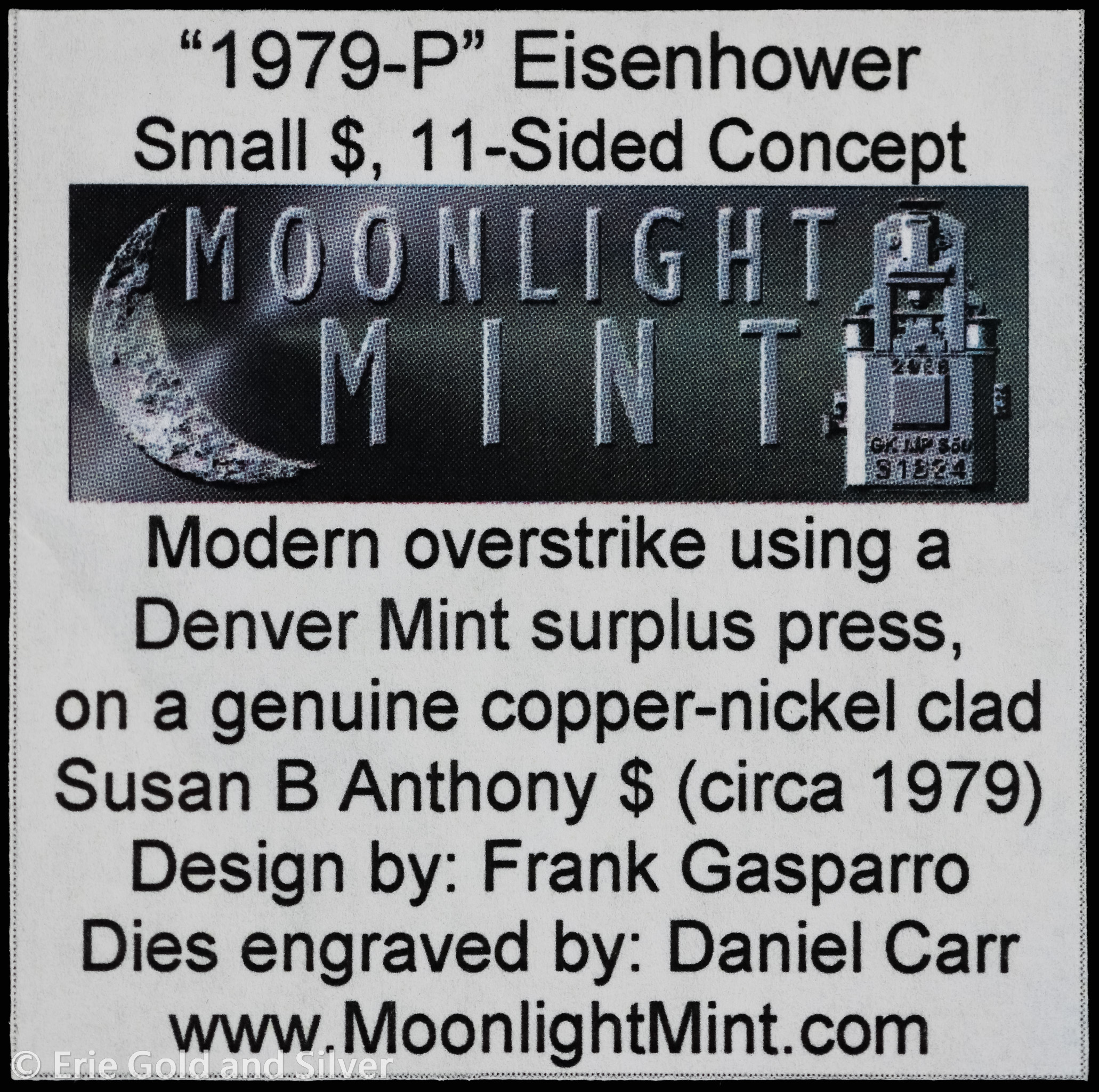 1979-P Dan Carr Moonlight Mint Token Eisenhower O/S on USA 1979 SBA ANACS MS 69